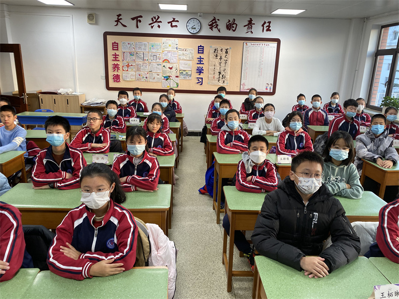 仪式上,全体师生观看了共青团少工部制作的自主养德系列课第十七讲——《求学之路》。视频讲述了在喜马拉雅山区,海拔高达3800米的偏远村庄里,孩子们“别样”的上学路。父辈们为了把孩子送到镇上的学校,他们要背起孩子,光腿趟过一半是水一半是冰的赞斯卡河,要在这艰险的冰河上跋涉一周的时间。孩子们愿意牵起父亲的手,共同跨越通往梦想的崎岖坎坷之路。这样一条世界上最寒冷最危险的上学路,都没有阻止孩子们渴望上学、渴望求知的脚步,知识改变命运对这些孩子来说,不只是一句口号,而是每天支撑他们,与求学路上的危险,以命相博的原动力。看到这里,同学们纷纷表示深受触动,有对这些人的心疼和敬佩,有对自己当下的珍惜和反思。或许在同学们心里也种下了一种改变世界的责任。因为,天下兴亡,我的责任,是我们工附人共同的信念。