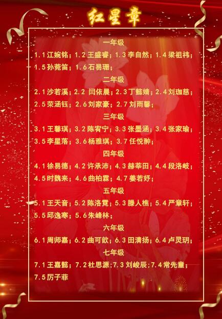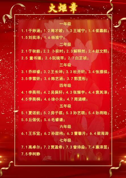 争章逐梦红心向党,争做新时代好队员。在2021—2022学年度第一学期“红领巾奖章”争章活动中,共有一千多名同学获得了本学期的三枚基础章:“红星章”、“红旗章”和“火炬章”。各中队根据不同的争章目标通过照片、作品、音频、视频,实践等多种方式进行评章。下面让我们一起来看看各班级获章的优秀代表吧。