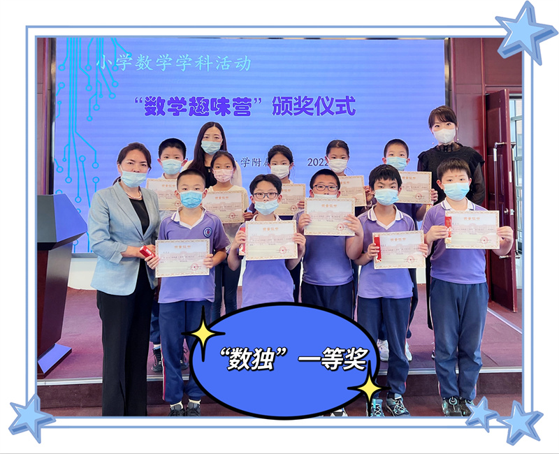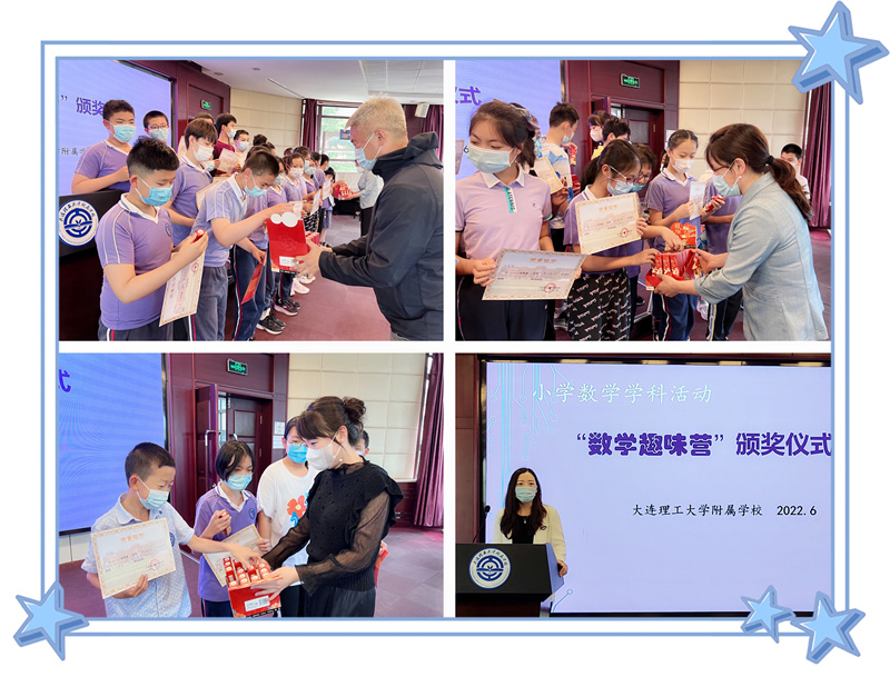 6月7日中午,在学校二楼多功能厅,小学部数学学科活动“数学趣味营”颁奖仪式隆重举行。会议由教学发展部主任徐晓辉主持,校长王东、副校长赵霞和校长助理盛雪为获奖选手颁发奖状、礼品并合影留念。