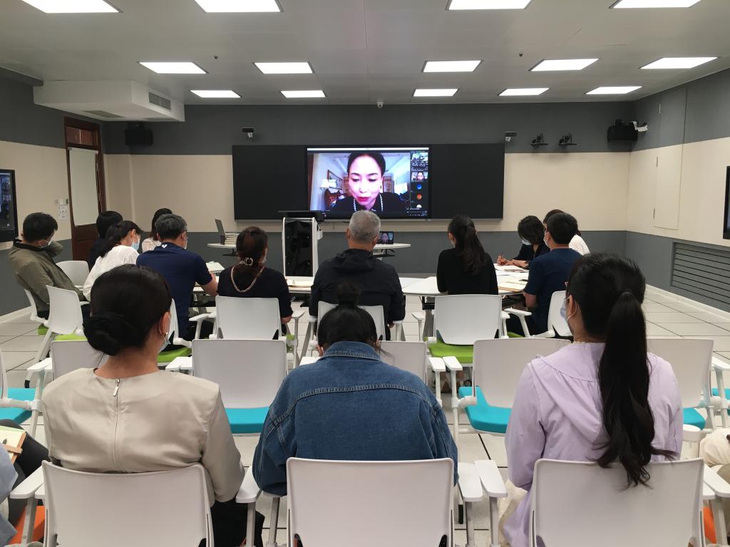 本次开题会,采用了线上线下相结合的形式。大连教育学院科研处副处长顾林、大连教育学院教育科学研究所副所长(主持工作)郑玉坤、大连市高新区教师进修学校科研部主任惠晓岩三位专家在云端与场内教师进行互动指导。校长王东、课题组核心成员以及20余位青年教师参加了本次开题会。