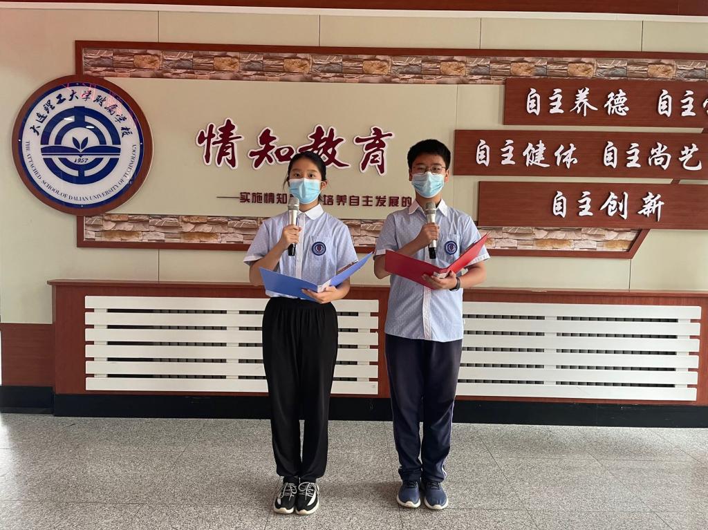 升旗仪式前,主持人贾盈希、王鹤轩随机采访了不同年级的同学,并在仪式上同大家分享了受访者对于这一学期的收获与感悟。两位主持人总结道:通过同学们的感言我们不难看出,在大家的成长道路上,善于发现身边的榜样,积极主动地向他们学习尤为重要。榜样们因努力而闪光,时刻散发着昂扬向上的精神力量,希望同学们能够向他们学习,不断靠近光,追随光,努力做一个发光的人。