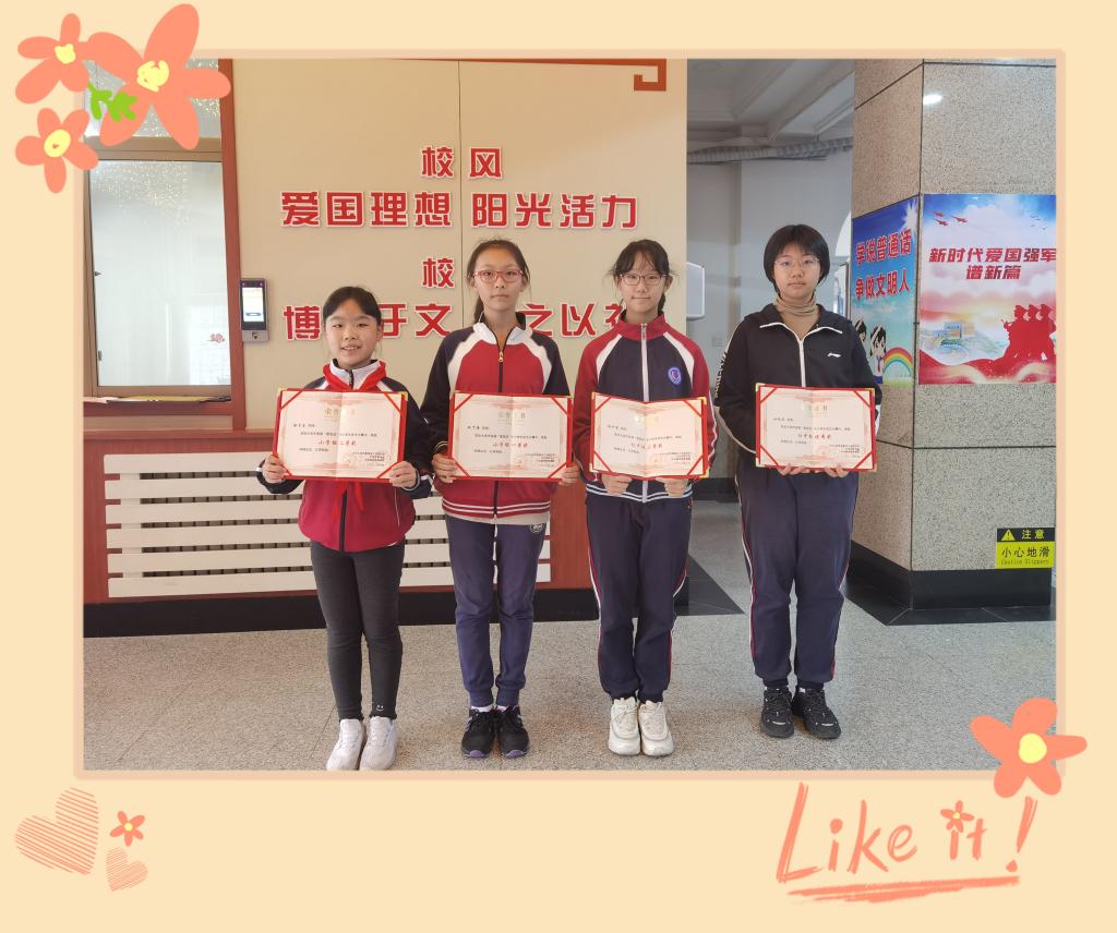 姚丁语同学获小学组一等奖,徐子壹同学获小学组二等奖,刘咏涵同学获初中组优秀奖,杨伊湄同学获初中组三等奖。