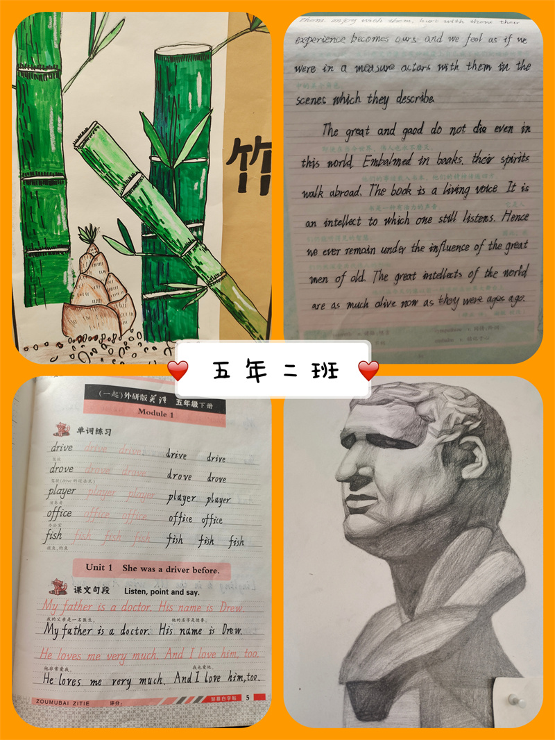 俗话说,良好的开端就等于成功的一半!看,下面是五年组各班级的优秀作业展,每份作业都彰显了同学们在假期中的认真和坚持,同学们也满腔热情、意气奋发地满载着他们的寒假成果迎接新学期的到来,一起来看看我们的作业成果吧!