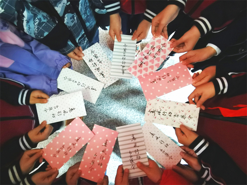 在今天的启动仪式中,每个班级将抽取一份任务锦囊,并于今天公布任务。任务是根据不同年龄段特点设置的,比如为家人精心准备一份早餐;为同学认真讲解一道题;在公交车为需要的人让一次座位等等。朱老师强调,希望同学们从身边的小事做起,以最朴素的方式,传递最动人的温情。