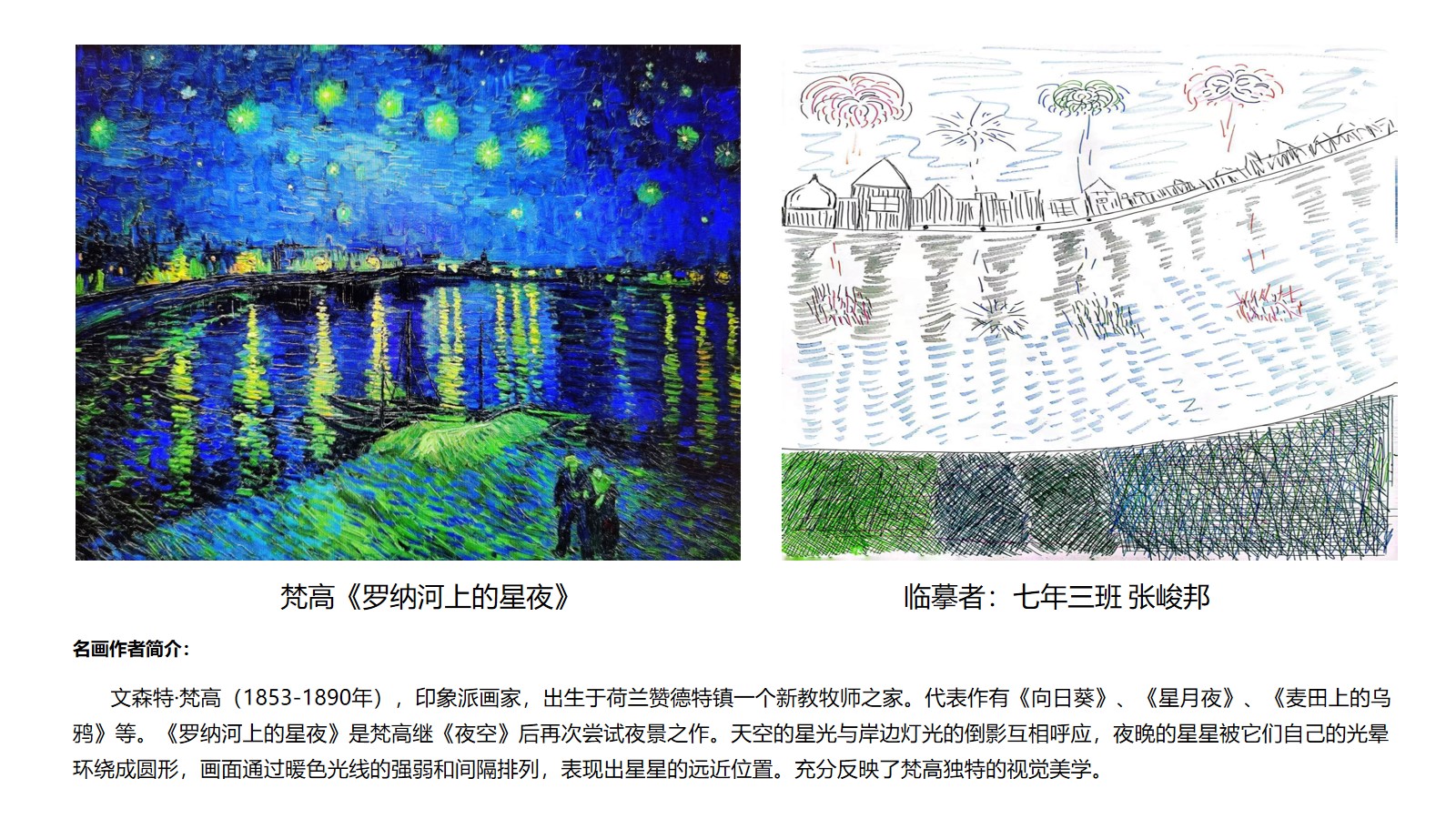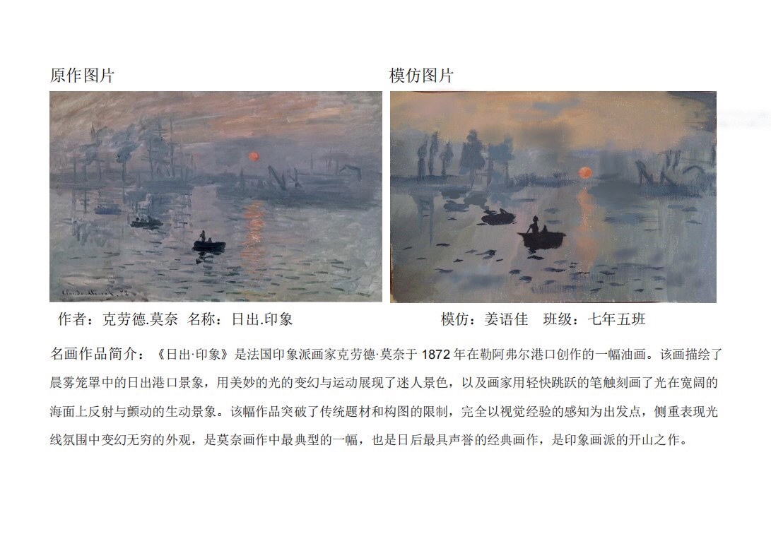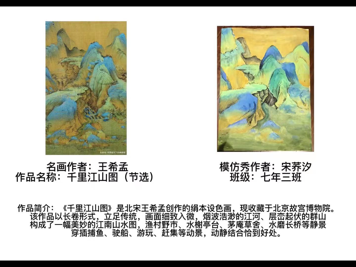 另一种是学生对经典美术作品赏析,结合自己的感悟,利用擅长的画种进行再创作的“绘名画”形式。此形式引领学生学着像艺术家一样去思考,并用自己的方式创造美。