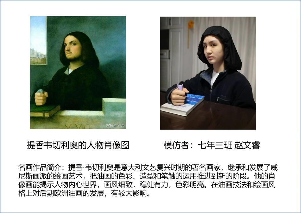 惟妙惟肖的“扮名画”,给人以美的享受,体现着艺术无穷的魅力。