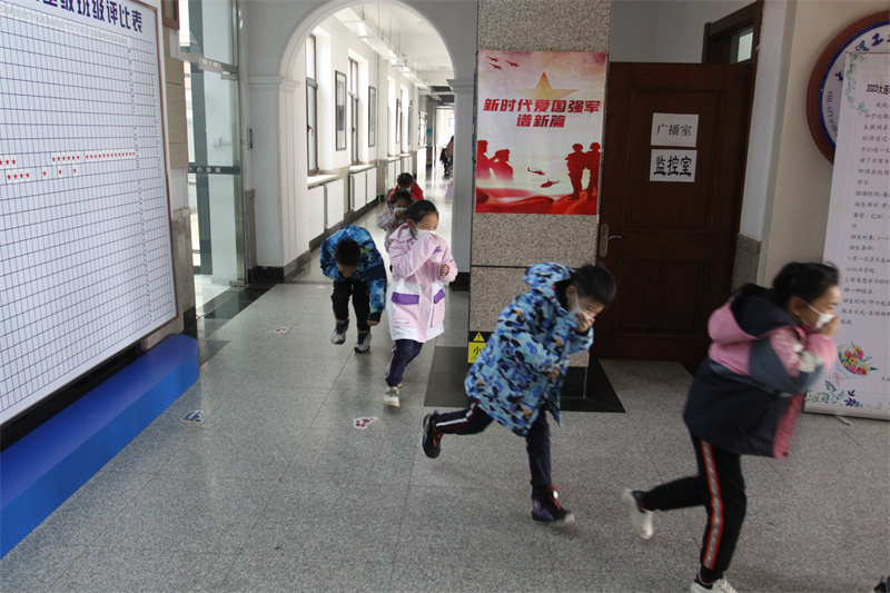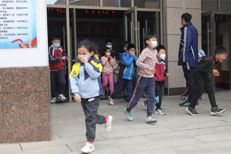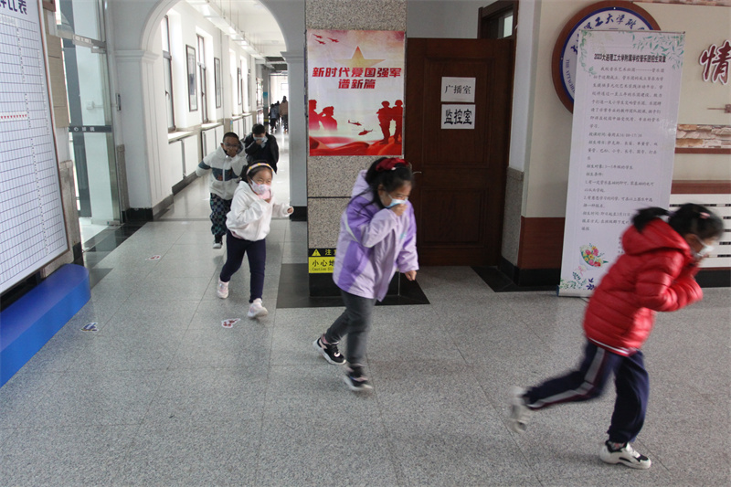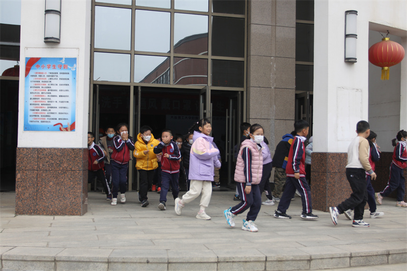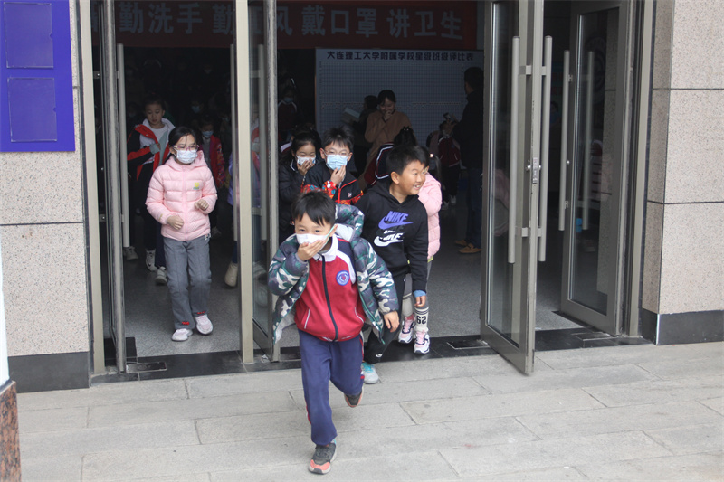 演练开始,首先,班主任老师根据安全宣传短片指导学生如何在灾难发生时进行自救。然后,听学校统一调动分楼层、按各班级逃生路线有序撤离。班主任最后离开教室,楼层负责老师重点关注楼梯口拥挤和下楼拥挤问题,根据实际情况进行人流调整并最后离开本楼层,在各个出口定点负责的教师最后离开教学楼,其他教师随学生一起撤离,所有教师撤离过程中协助负责疏散的教师进行学生疏导。