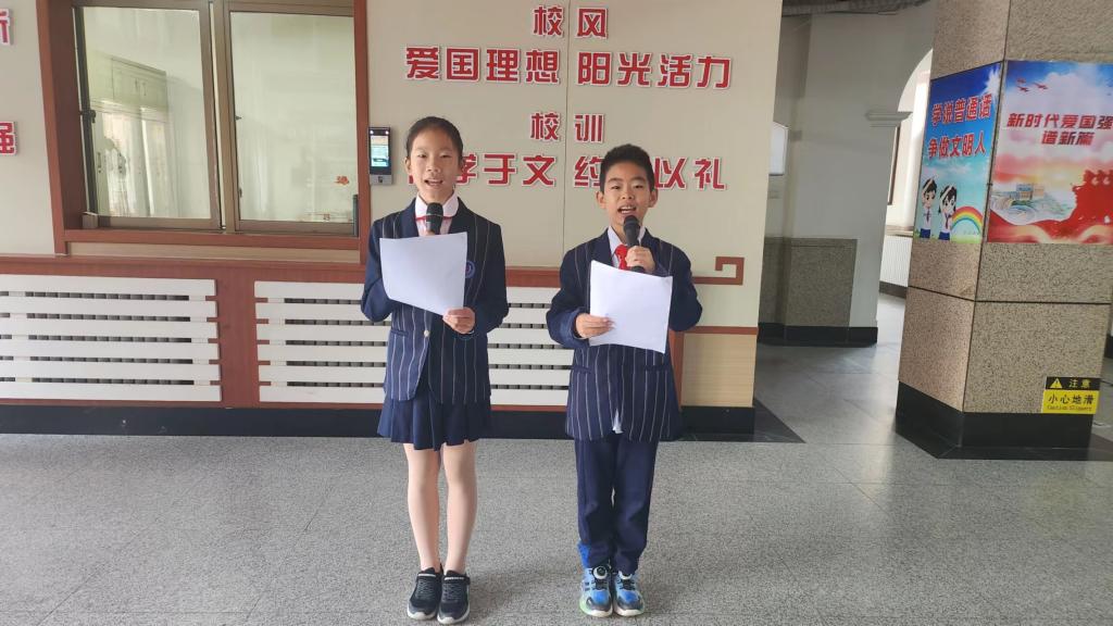 升旗仪式上,主持人赵浡伊、高灵犀两位同学讲述了“世界读书日”的宗旨,并带领同学们回顾了我校往期“世界读书日”精彩活动,呼吁同学们尊重和感谢为人类文明做出巨大贡献的文学、文化、科学思想大师们,懂得保护知识产权。