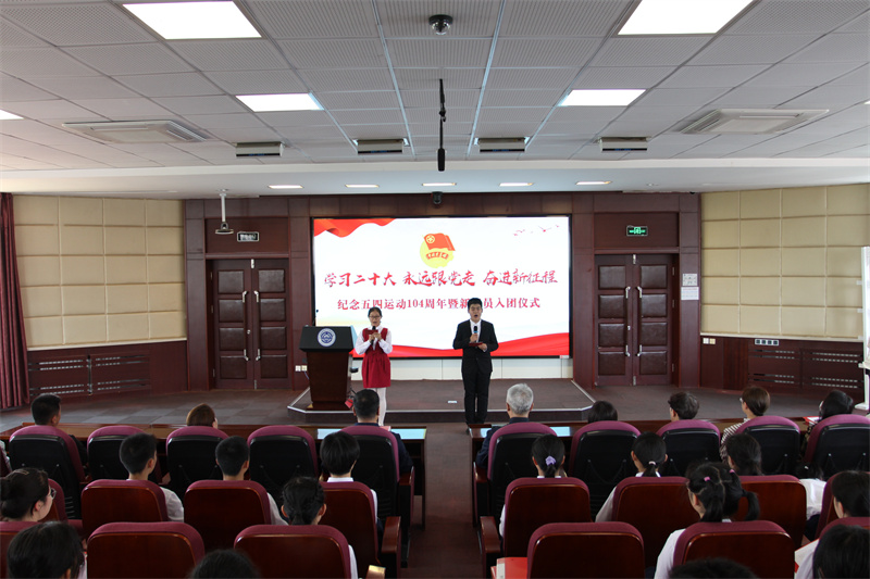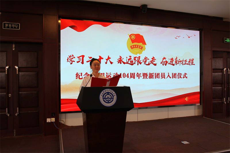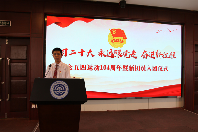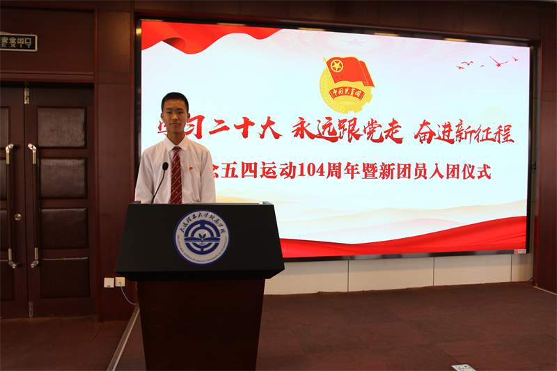 为深入学习贯彻党的二十大精神,进一步传承和弘扬五四精神,团结带领广大团员青年永远跟党走、奋进新征程。5月26日,我校举行“学习二十大、永远跟党走、奋进新征程” 纪念五四运动104周年暨新团员入团仪式。