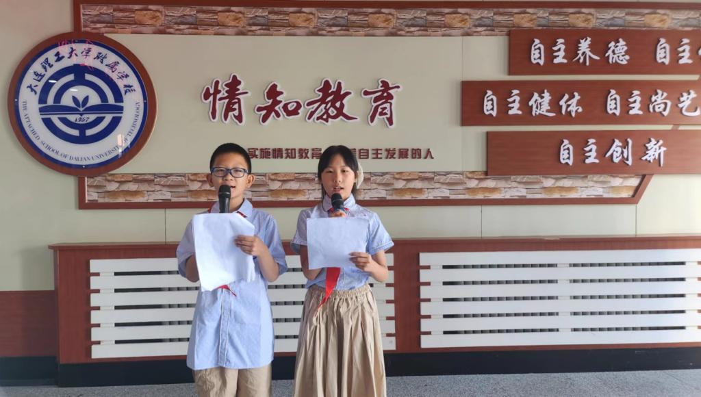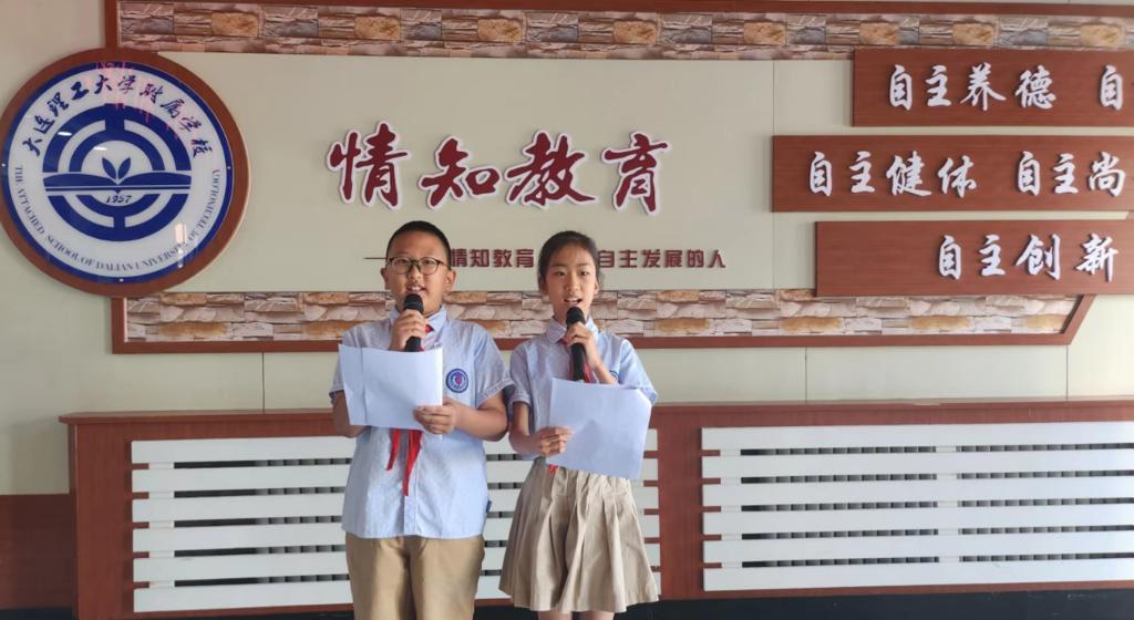 随后,苏昕瑶、刘昱铭两位同学做了国旗下讲话,两位同学用平实的语言向我们诉说了和父亲相处时的点点滴滴。这些生活中平凡而又温馨的时刻,让所有师生为之动容。他们把父爱比作一把大伞,父亲宽大的肩膀如同大伞一般为我们遮风挡雨,给我们带来温暖。从这些平常的点滴小事中,我们体会到了父爱是无言的支持,是遇到困难时默默的帮助,父亲如大山般包容着我们,如一盏明灯指引我们前进的道路。正如大连理工大学赵岩老师和他儿子演唱的歌曲《父子》那般,也许说不出,但父爱一直都在。随后,两位主持人倡导全体同学用自己的方式感恩父爱,一张贺卡、一个拥抱、一句感谢都可以是最真挚的祝福。