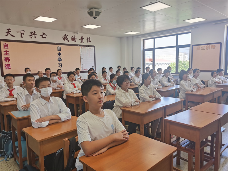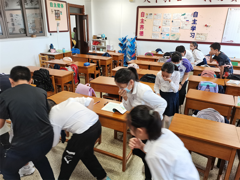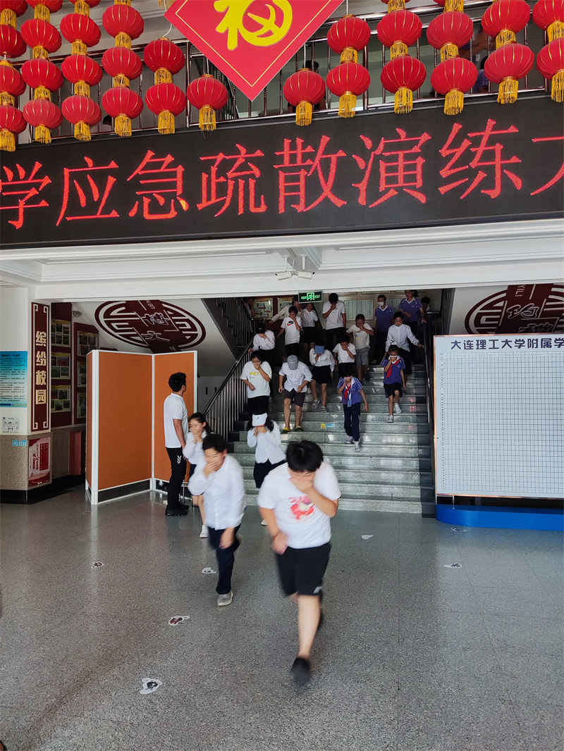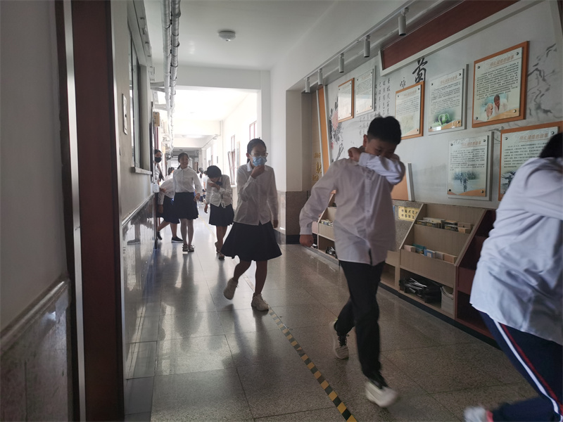 首先,德育工作部组织全体师生观看“校园疏散演练”视频和“火灾自救”安全教育视频。接着,班主任老师进行了突发事件处置和自救知识指导。演练之前,关键位置负责教师就位。随后,下达“疏散演练开始”命令,各班级开始按楼层疏散。各班学生在老师们的指挥、疏导下,按照指定路线,迅速有序地进行紧急疏散。全体师生用时145秒撤离到安全地带。整个演练过程严肃、认真、紧张、有序、高效。
