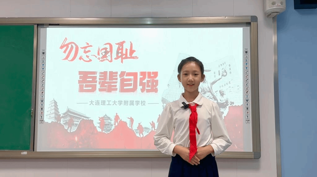 随后,全体师生一起观看了微课视频《不忘“九一八”》。日本对华持续侵略是近代以来中国历史上最黑暗的一页,历史上从来没有哪一次战争像抗日战争这样,让中华民族付出如此重大的代价。“九一八”是国耻日,也是民族的觉醒日。“今天,我们的祖国独立了,富强了,可我们面对的国际形势依旧错综复杂”,李嘉祺向同学们提出了一个切实的问题:“作为新时代的青少年,我们应该怎样把爱国付诸于实际行动,为国家贡献自己的力量?”
