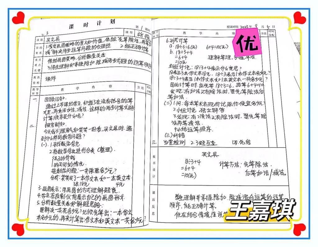 笔底春风,文字跃动;四季耕耘,淬炼深功。备课是教师的一项基本而又至关重要的工作,教案的书写是教学活动的依据,是教材、大纲与课堂教学之间的纽带和桥梁。精巧的课堂往往始于精心的设计,成于精彩的展现,终于精准的反思。因此,为进一步夯实青年教师教学基本功,规范教师备课环节,优化课堂教学设计,提高青年教师教学能力和业务素质,我校于本周举办了青年教师手写教案展示活动。