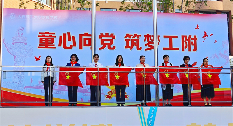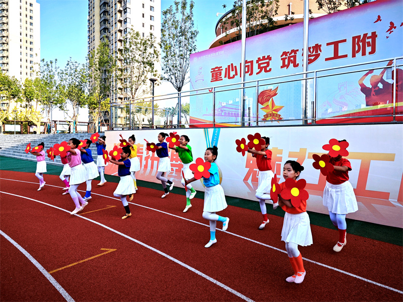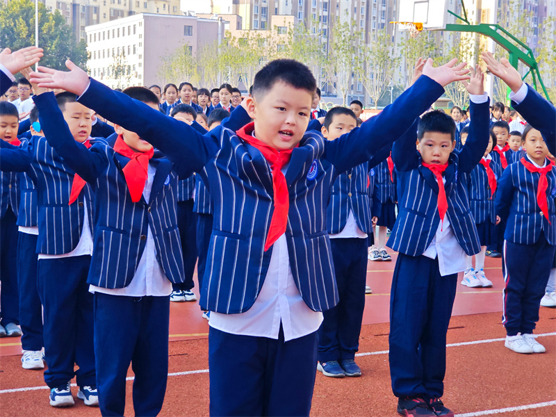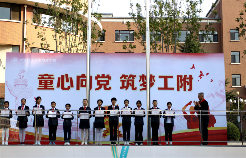 校舞蹈队同学带来舞蹈《祖国的花朵》,在欢快的舞步、灿烂的笑容中,新队员们期待着他们人生中意义重大、激动人心的时刻的到来。