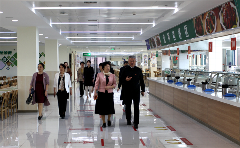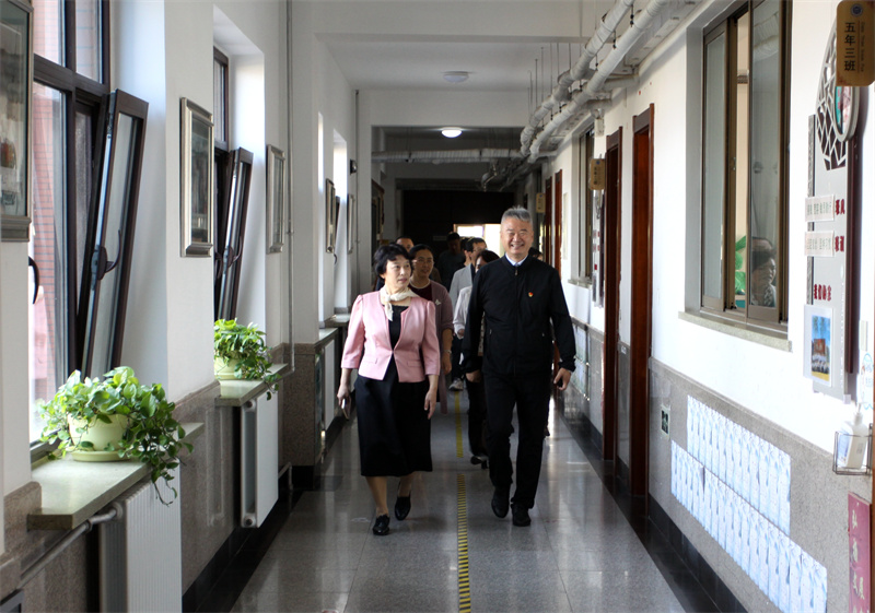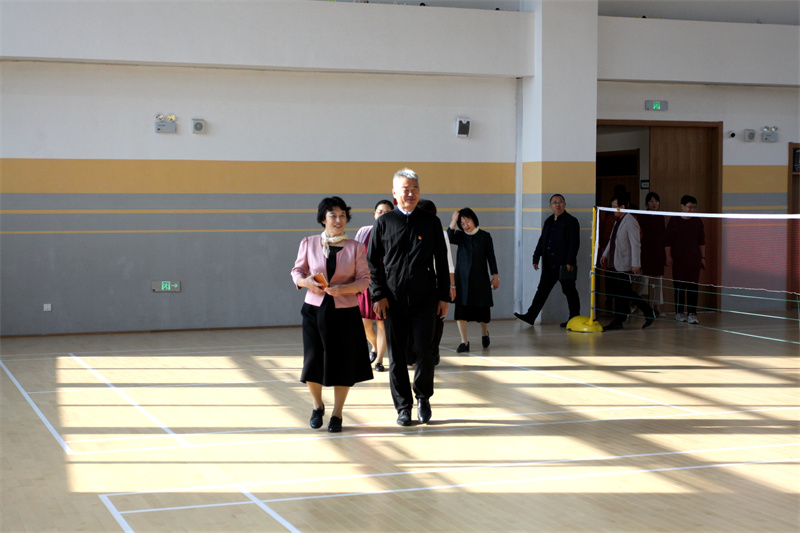 步入校园,王冬凌院长一行先后考察了操场、体育馆、食堂、教学楼等基础设施。王东结合我校近年来教学设施建设情况,围绕立德树人、自主学习、体育锻炼、劳动培养和校园管理等方面的问题做了详细介绍。