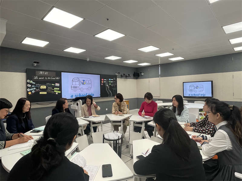 课后,全体教师认真听取了温晓慧老师对本次展示课的精彩点评和精准指导。首先,温老师充分肯定了两位教师的教学能力和教学素养。随后,温老师对课堂具体环节及内容做出了详细点评。她指出,两节课的教学内容均体现了新课标核心素养中对学生语言能力、学习能力、文化意识和思维品质的培养。教学主线清晰,即在情境、语境、情感建构中引导学生进行语言输出,形成语篇。课堂整体精彩纷呈,其共同亮点是能充分利用教学资源引导学生在体验中学习,如将目标语言、结构性语言融入自编小诗歌、制作角色头饰增强学生代入感、课件及板书辅助创设真实情境解决实际问题等等,总之充分践行了英语学习活动观的理念,从理解、实践到创新,从基于语篇的处理阶段到超越语篇的学创阶段,层层深入,最终高效达成教学目标。同时,温老师也提出了情境中设置环节深化语言目标、搭建支架丰富语言输出等专业性建议。