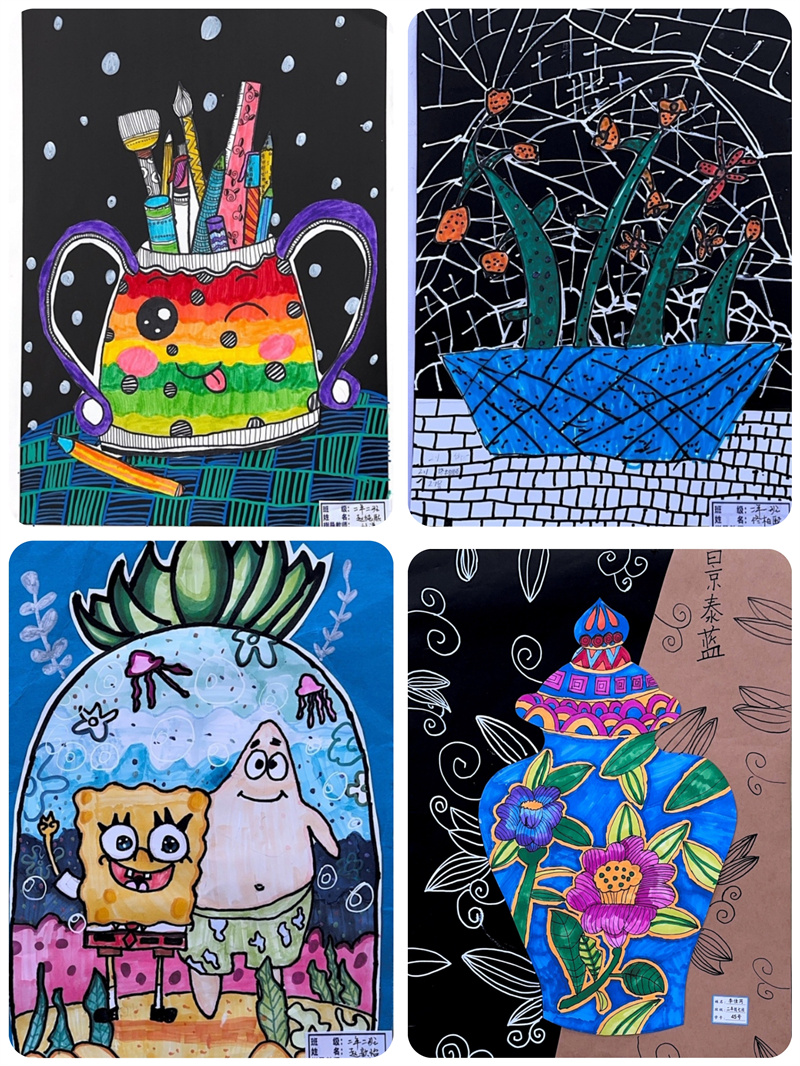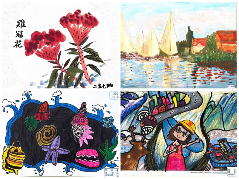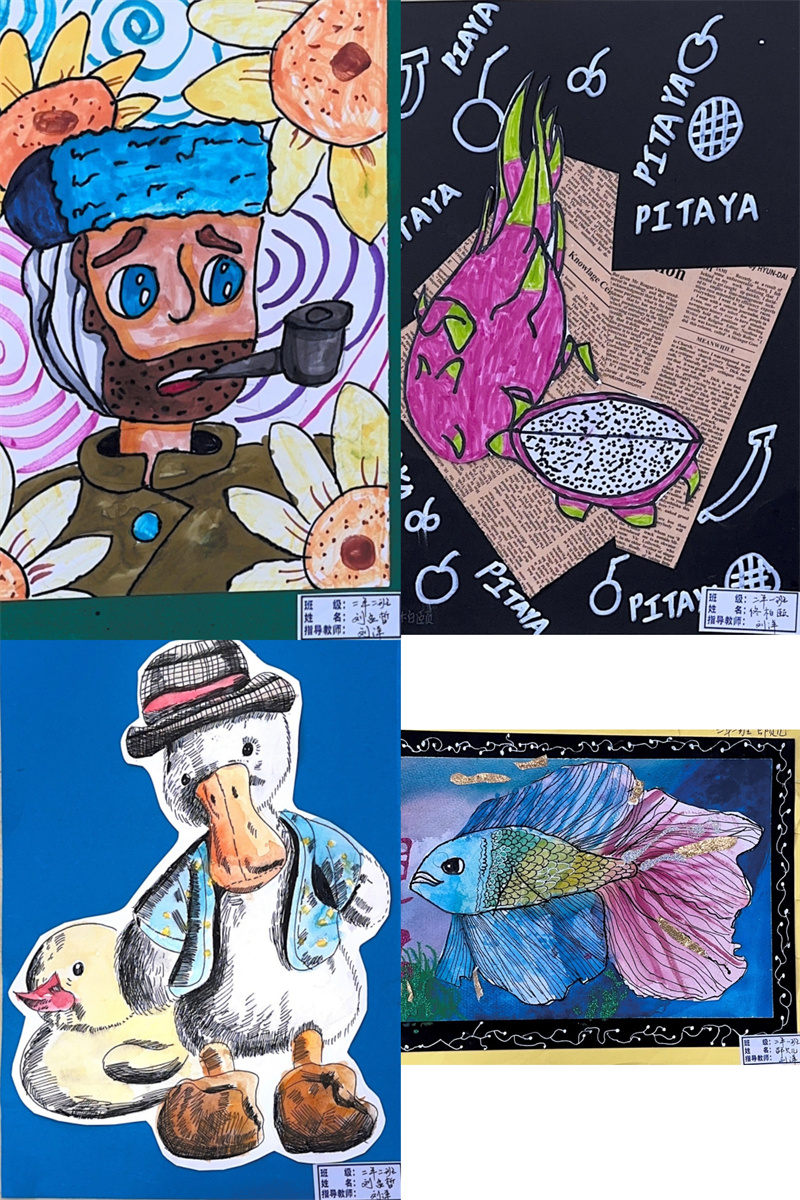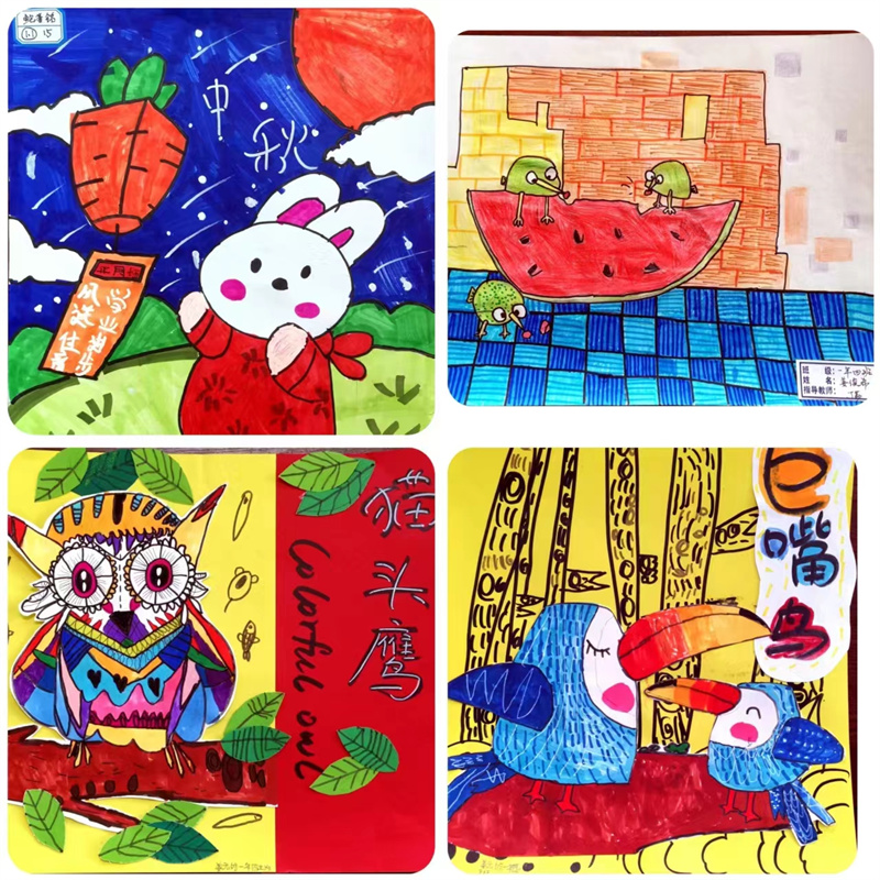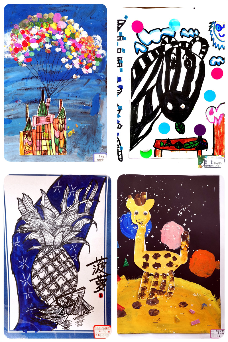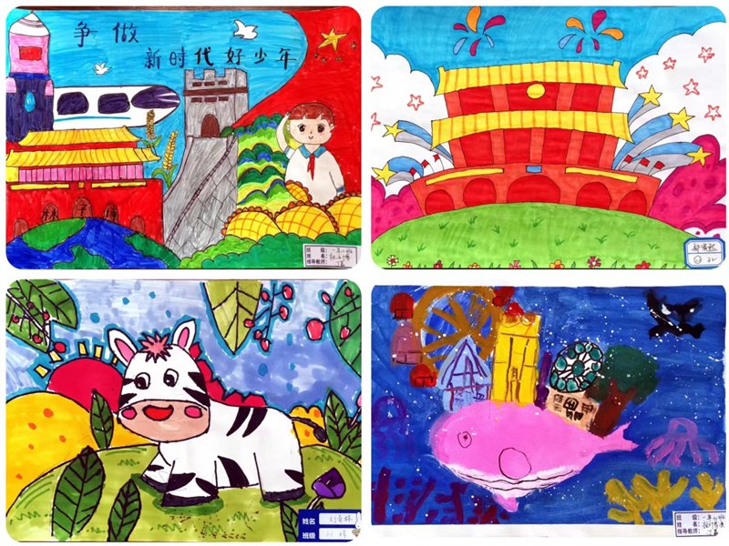 毕加索说:“每个孩子都是艺术家,天地山川、草木虫鱼在孩子们的创意下,都有着别样的美。”一张张的绘画作品都是孩子们艺术才华的绽放和审美情趣的彰显,它们或满载激情,使精彩凝于瞬间;或盛满芬芳,流畅线条和绚丽色彩与时代共炫,美好韶华和无限梦想与未来同耀。同学们在艺术实践时,激起对美好的遐想和追求,放飞理想,奋发进取。