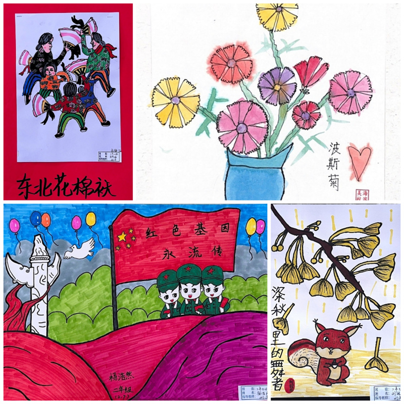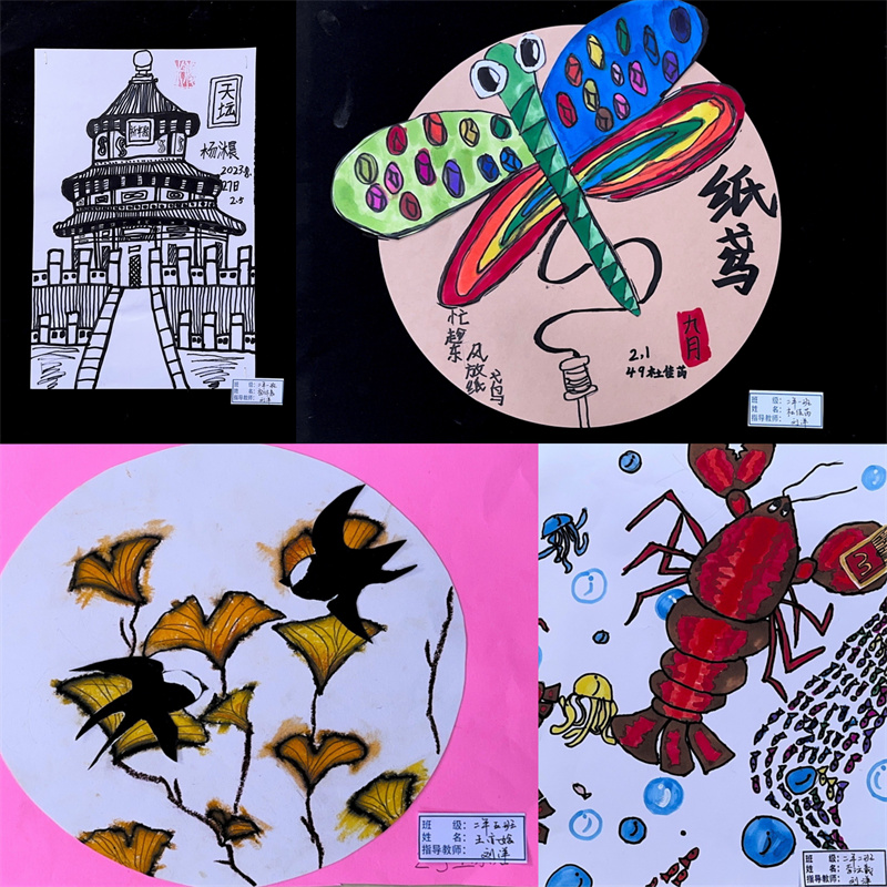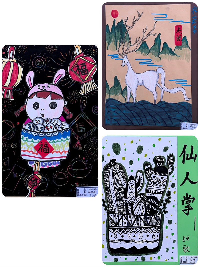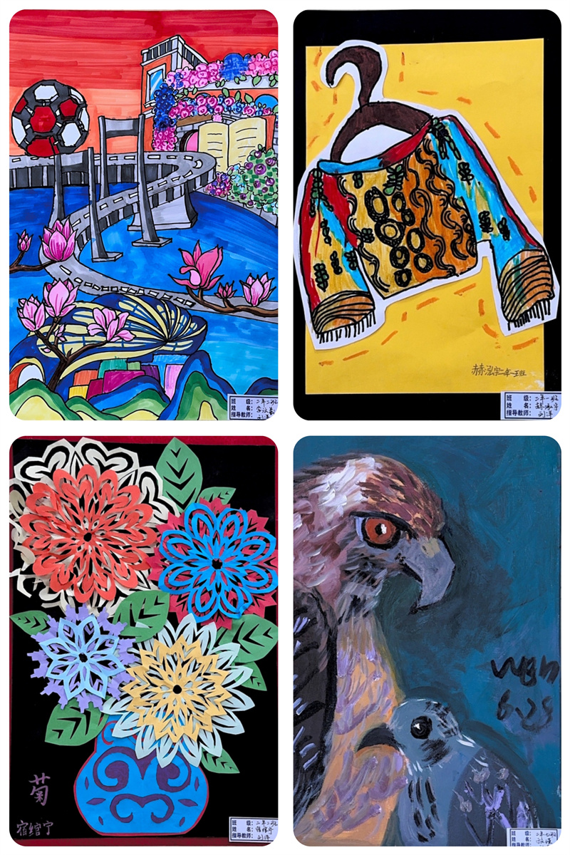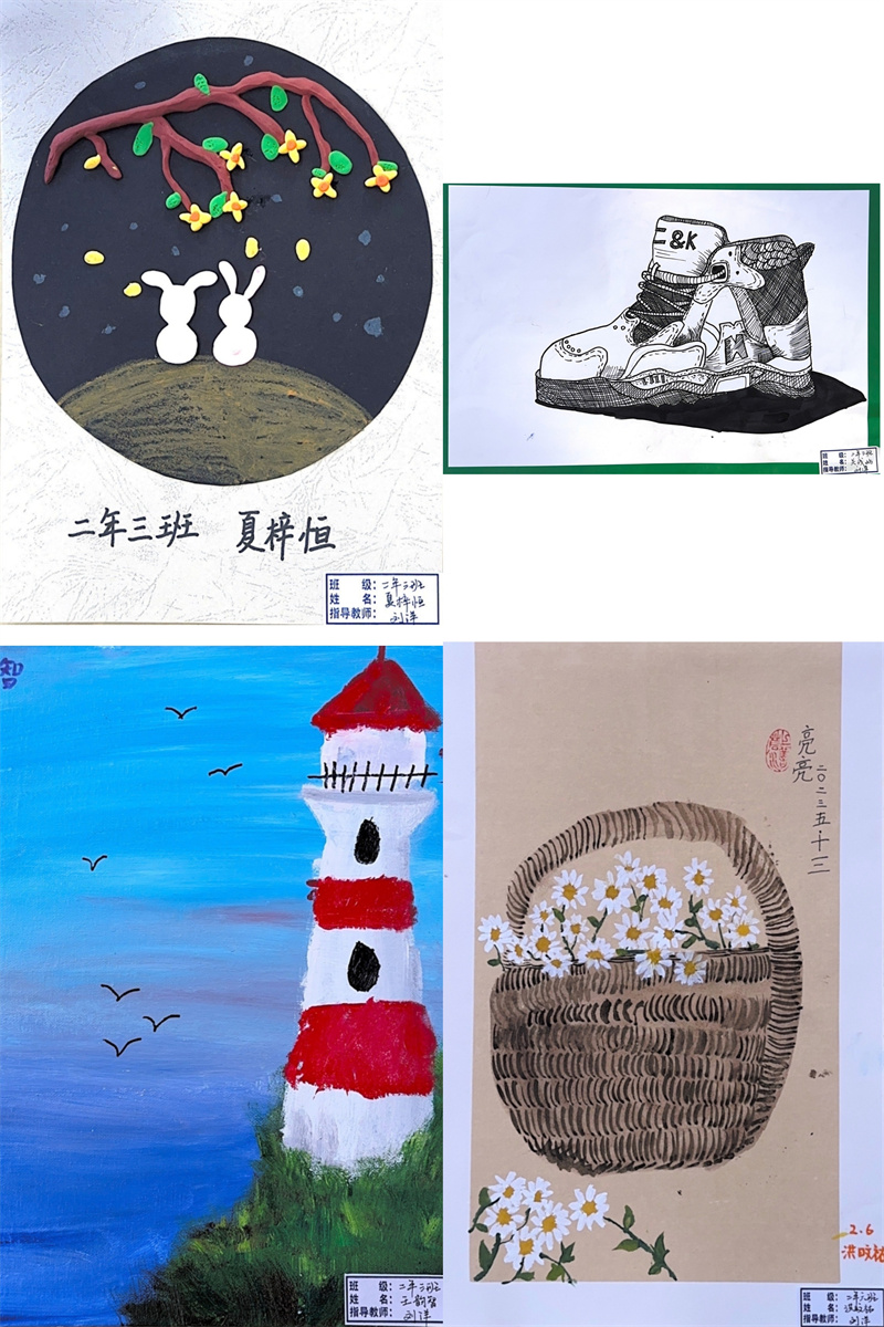 毕加索说:“每个孩子都是艺术家,天地山川、草木虫鱼在孩子们的创意下,都有着别样的美。”一张张的绘画作品都是孩子们艺术才华的绽放和审美情趣的彰显,它们或满载激情,使精彩凝于瞬间;或盛满芬芳,流畅线条和绚丽色彩与时代共炫,美好韶华和无限梦想与未来同耀。同学们在艺术实践时,激起对美好的遐想和追求,放飞理想,奋发进取。