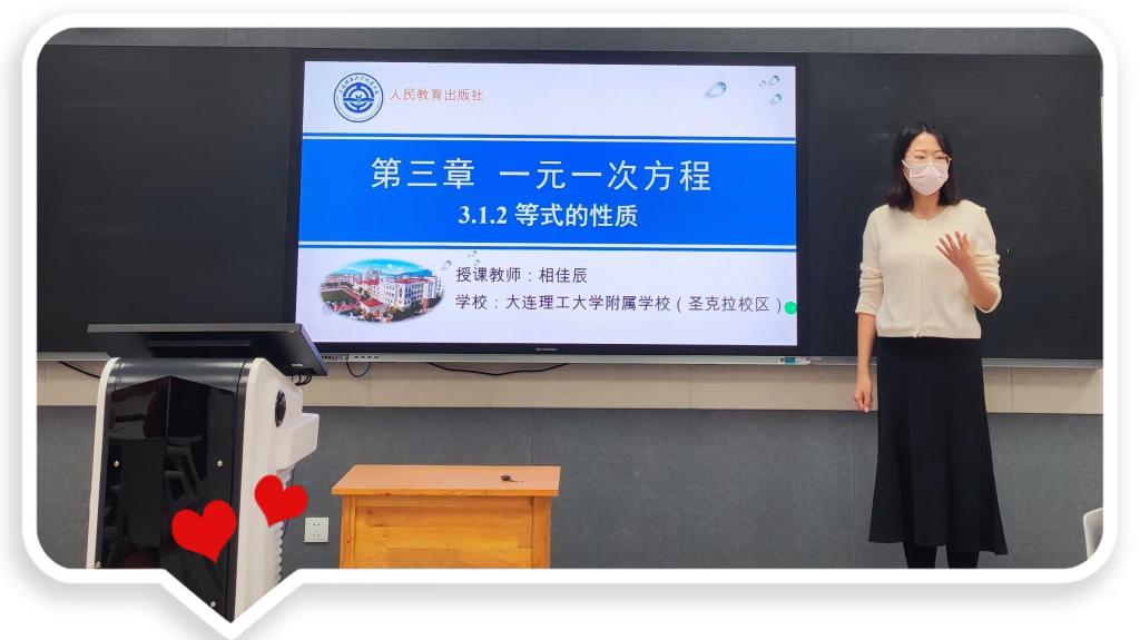 首先,圣克拉校区的相佳辰老师展示了国优课程《等式的性质》的设计思路。相老师围绕了三个方面展示了自己设计课程的心路历程,包括课程如何进行新颖的引入,书本上两个性质为什么表述方式不同,以及如何设计更突出数学本质,生动地叙述了如何突破以往常规教材引入,如何调动学生的兴趣,来开展数学教学。随后她阐述了本节课的教学目标,教学重点难点,提出追求问题本源的思想,并向全体教师分享了比赛中的收获和经验。