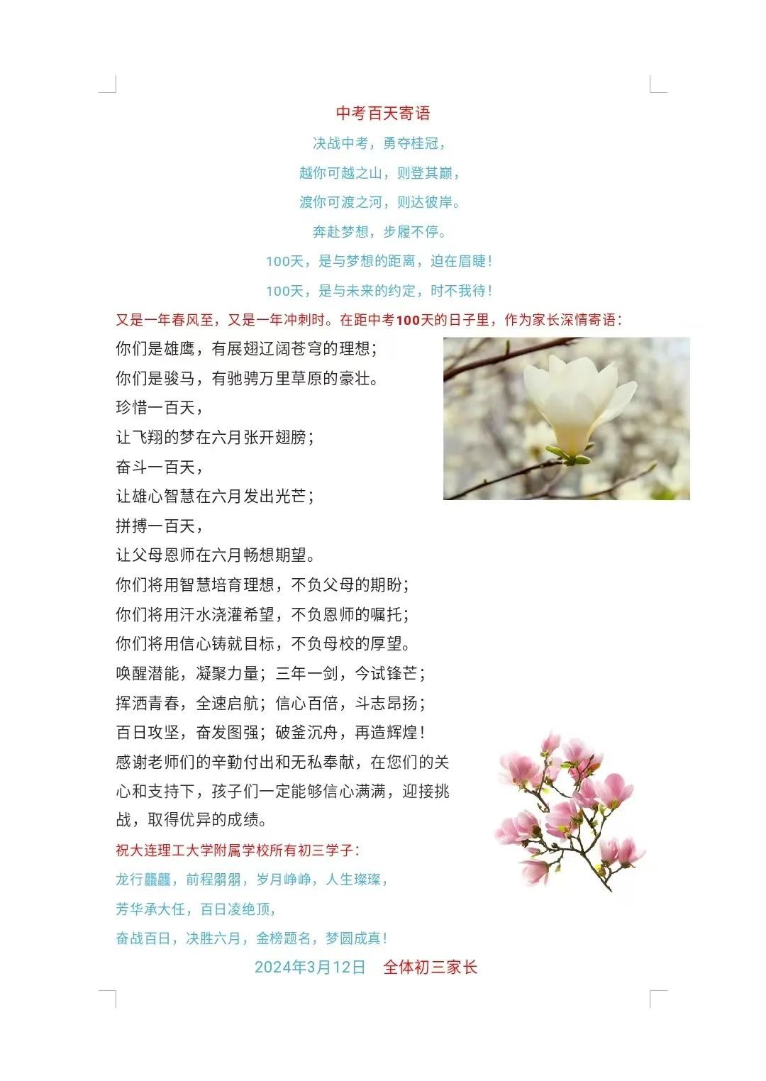 父母是孩子求学路上坚实的后盾,在百日冲刺的重要时刻,爸爸妈妈们也带来了他们对孩子们的殷殷嘱托和满满的期待。