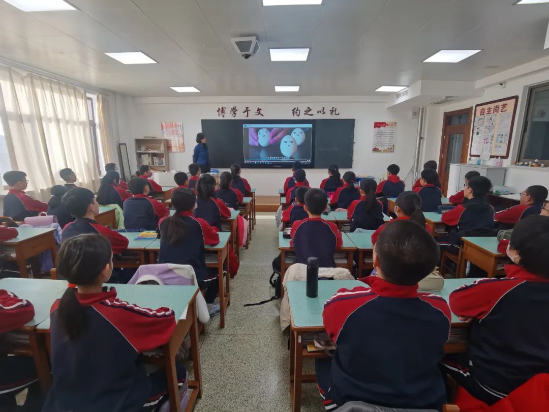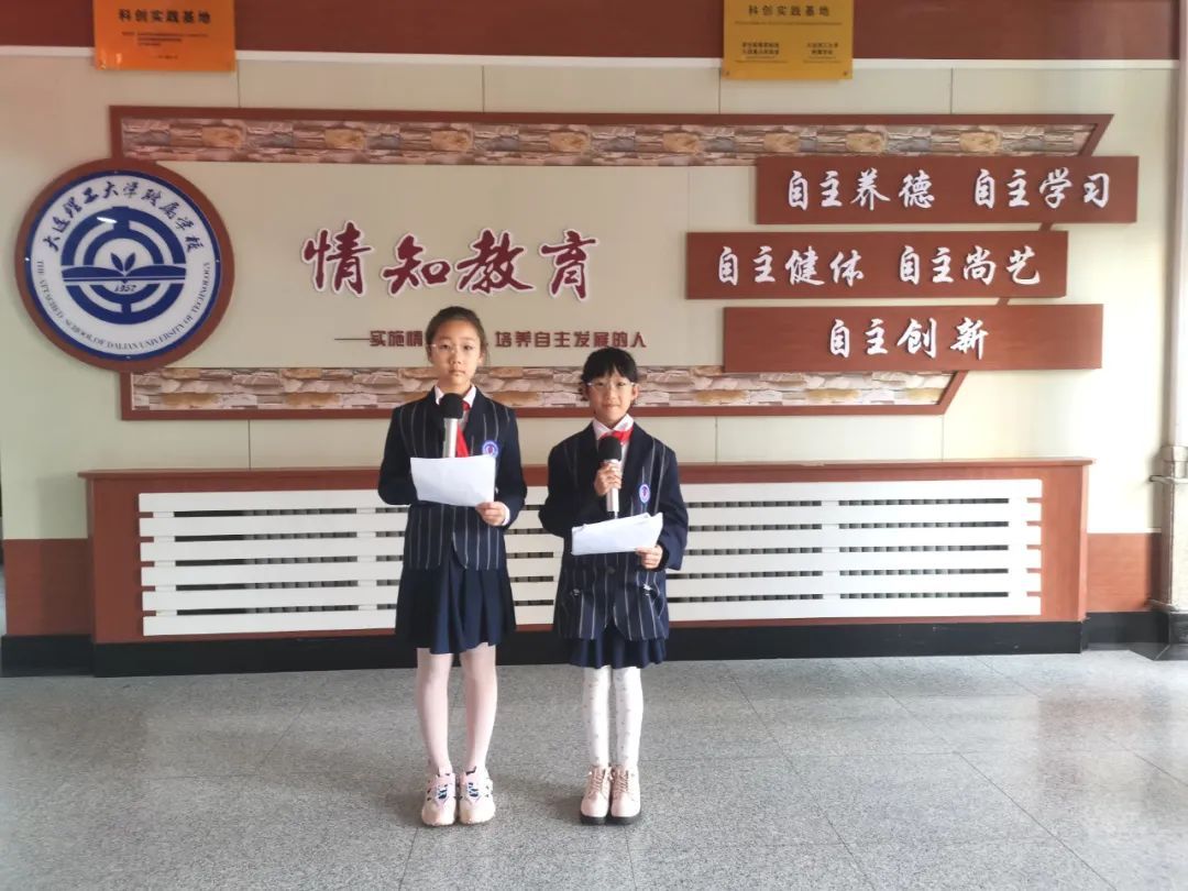 季君诺和马宇涵两位同学在国旗下献词,引用清代诗人宋琬和顾贞观的诗词,来表达对春天美好的赞美和对生活的热爱。同时表达“谁把春光,平分一半,最惜今朝”。最后,同学们通过视频了解了“竖蛋”这一有趣有料的春分传统习俗。