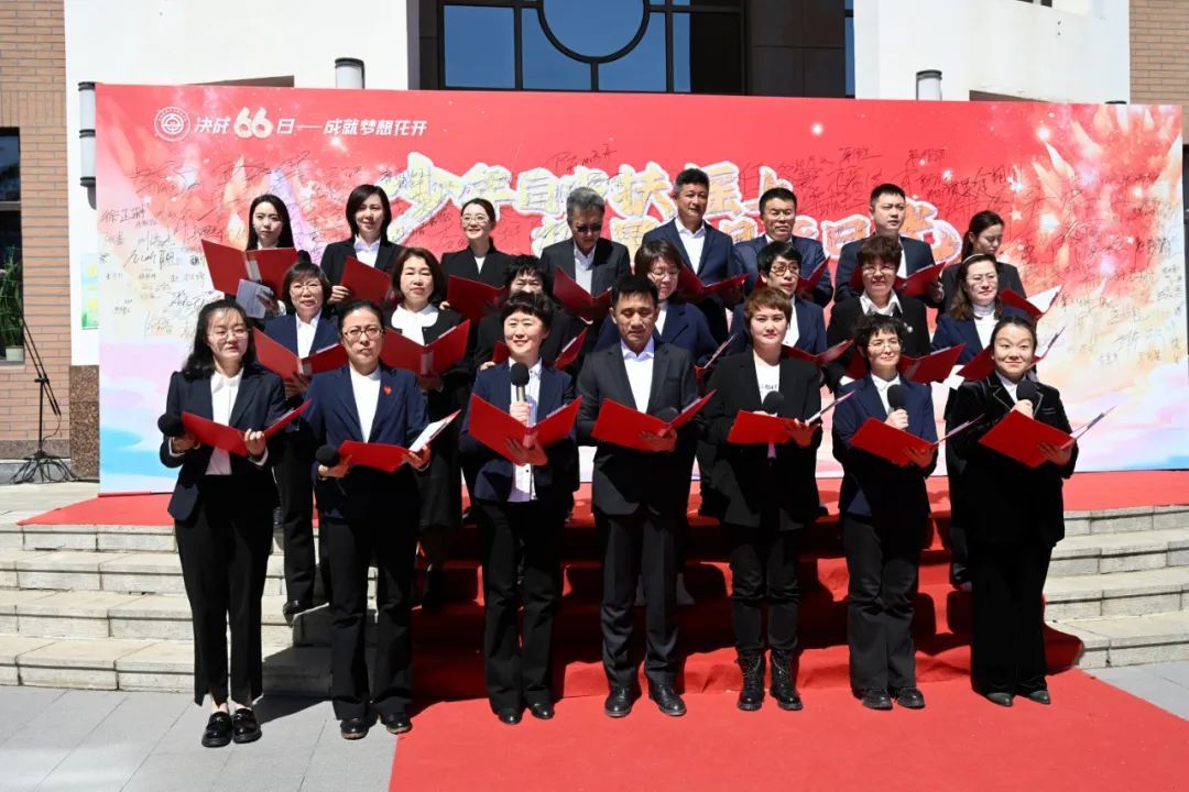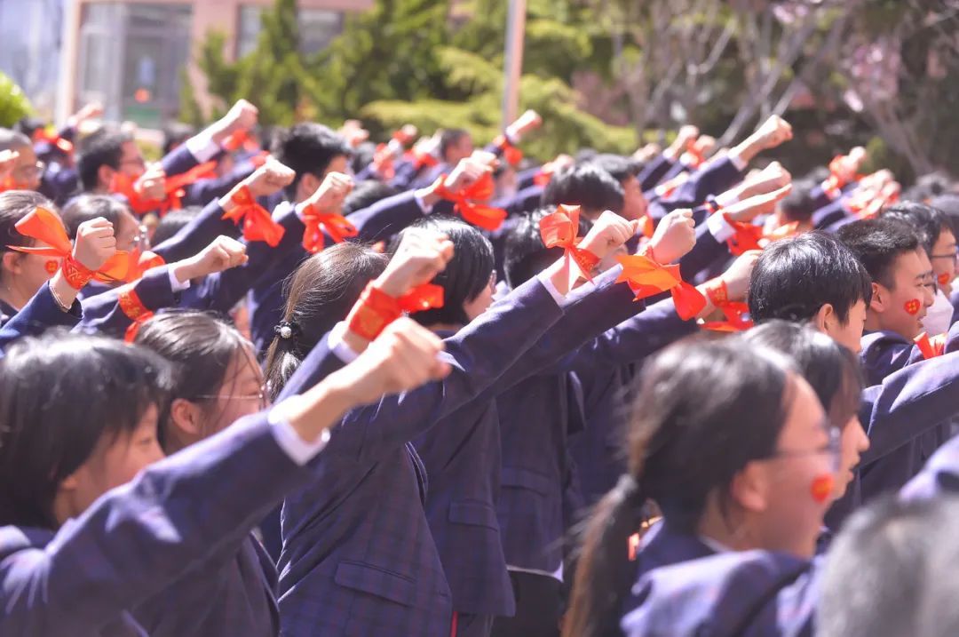 “踔厉奋发、勇毅前行!”在如虹士气的勉励下,在诚挚的祝福声中,各班的“奋斗”激情瞬间被点燃,全体九年级学子用铿锵的声音喊出圆梦中考的坚定!