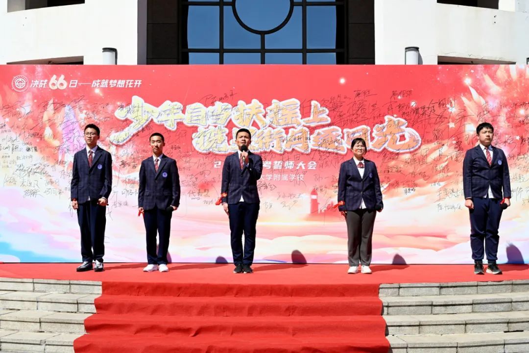 4月16日下午13点20分,我校主题为“少年自当扶摇上,揽星衔月逐日光!”的中考誓师大会,在振奋人心的战鼓声中拉开了帷幕。九年级全体师生、家长以及七、八年级学弟、学妹操场集结,在春意盎然的校园,见证这盈满斗志、放飞梦想的激动时刻,感受踔厉奋发、决胜中考的豪情!