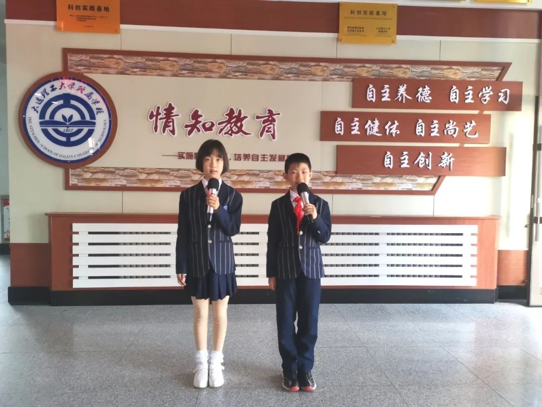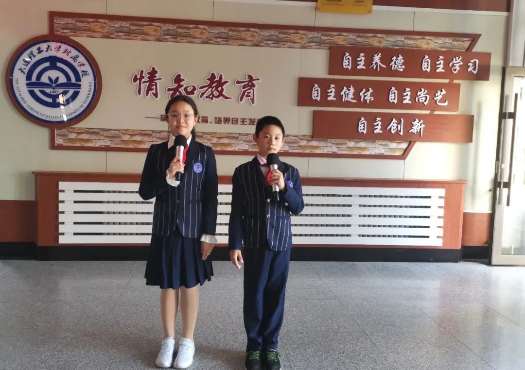 姜东阳和董书瑾两位同学在国旗下献词,讲述自己与书的故事。姜东阳同学分享了他的读书方法:到大自然中去读书,邀请爸爸妈妈一起读书,用“心”读书。董书瑾同学则推荐同学们阅读《世说新语》,希望同学们通过阅读培养自己的品德、修炼自己的心性、了解古典文学的常识和中国的传统文化。