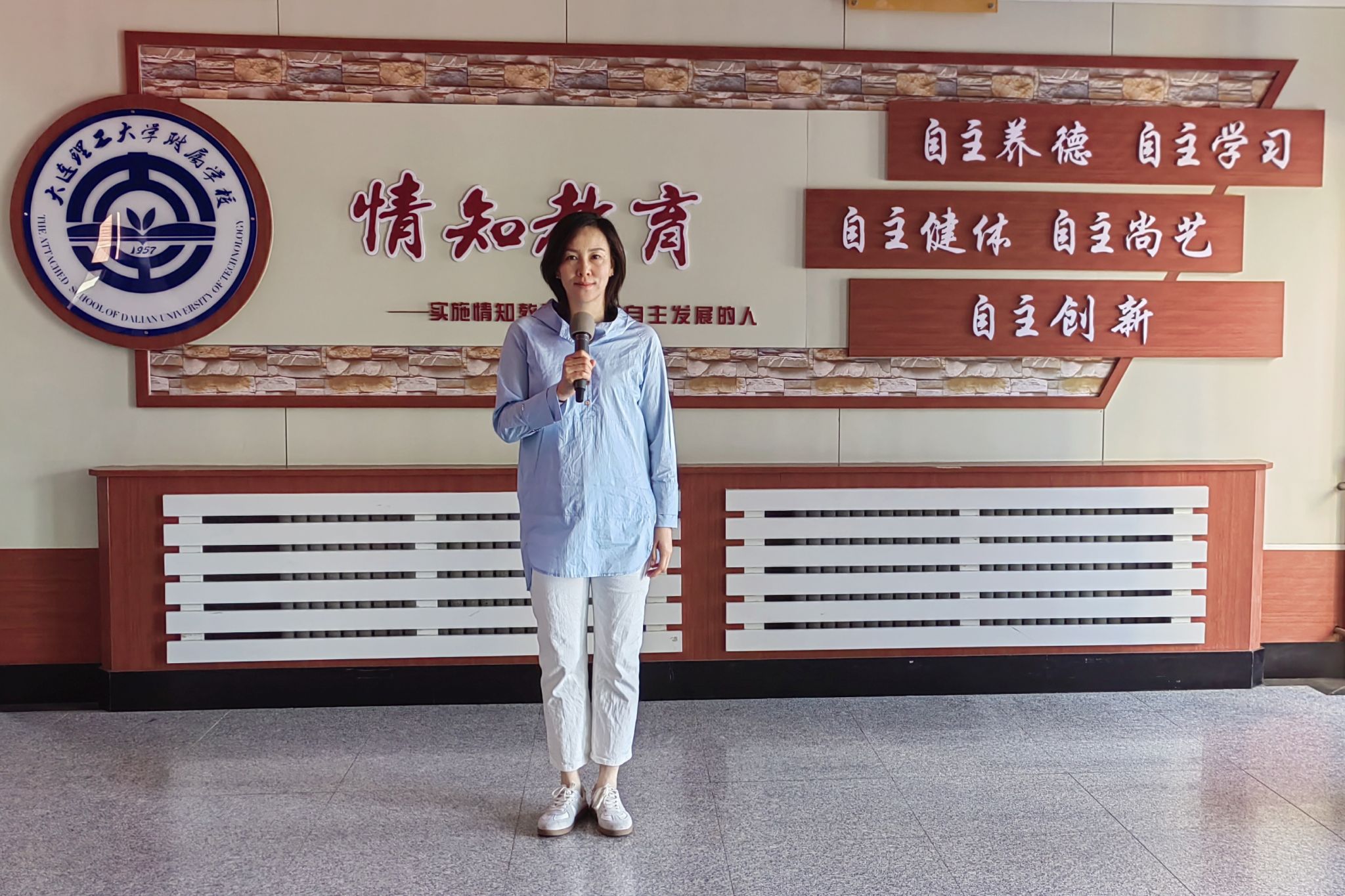 教育理念:以高尚的人格感染人,以和蔼的态度对待人,以丰富的学识引导人,以博大的胸怀爱护人,正心修身,平和博爱,以德立身,以德施教。