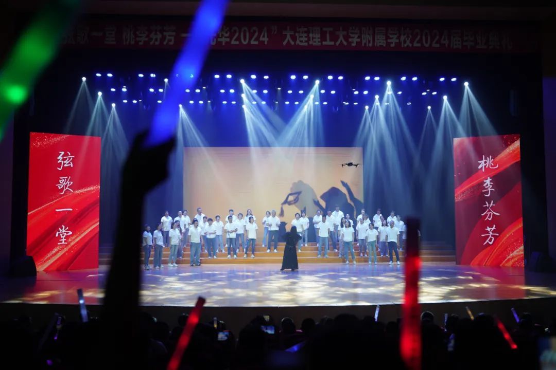 在老师们的合唱声中,典礼进入了尾声。老师们用歌声表达了对毕业生们的不舍和祝福,同时也寄托了对他们未来的美好期望。学生们则纷纷上台为老师们送上鲜花和礼物,表达了对老师的感激之情。