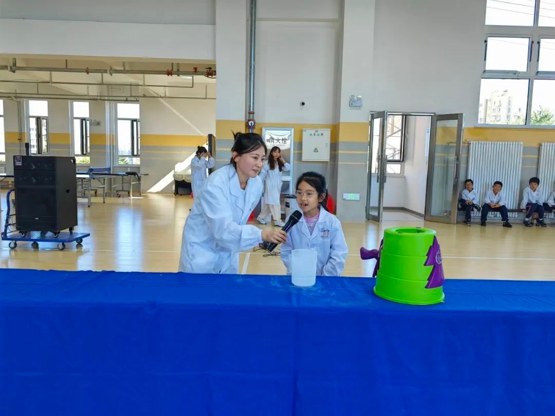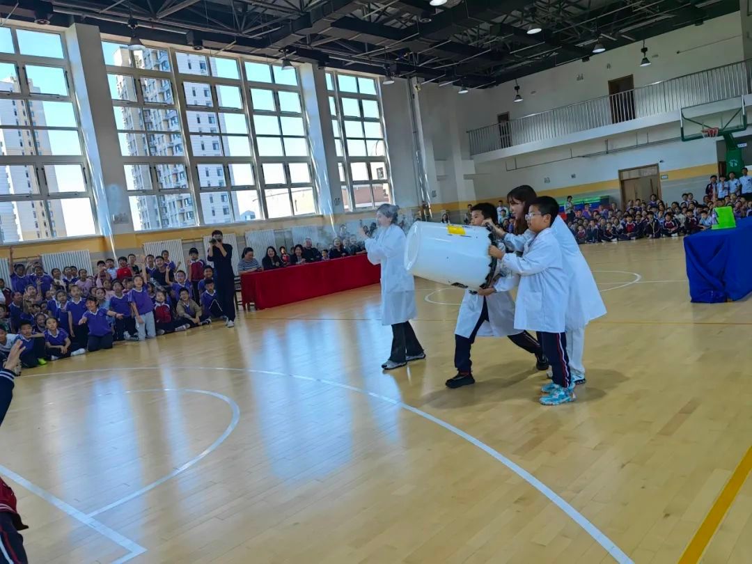 为了更好提升我校学子的科学素养,培养青少年的创新意识和创新精神,依照第三届校园科技节计划,10月11日下午,我校小学部举办了一场别开生面的科学表演活动。本次活动由科学组邱明老师组织策划,我校党委书记王东,党委副书记、校长李桂玲,党委副书记、副校长赵霞,小学教学发展部主任徐晓辉、副主任杨晨,德育工作部主任葛展廷、副主任曹延明出席,五、六年级学生及班主任参加。