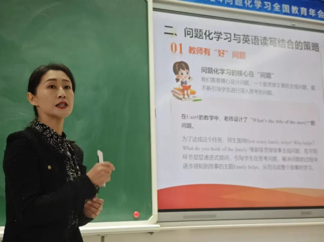同日,我校栾福迎老师作《问题化学习与英语读写结合的思考》核心报告。结合丛鑫老师在年会上展示的课堂案例,栾福迎老师从“明确主题与核心理念”“问题化学习与读写结合的策略”,及“实践中的挑战与对策”进行阐述。报告中明确了引导学生主动思考,借助读写活动将思维外化表达的读写教学理念。提出了“好问题”“提问题”“追问题”等六项策略,以将问题化学习与英语读写行之有效地结合,培养学生批判性思维和创新精神。