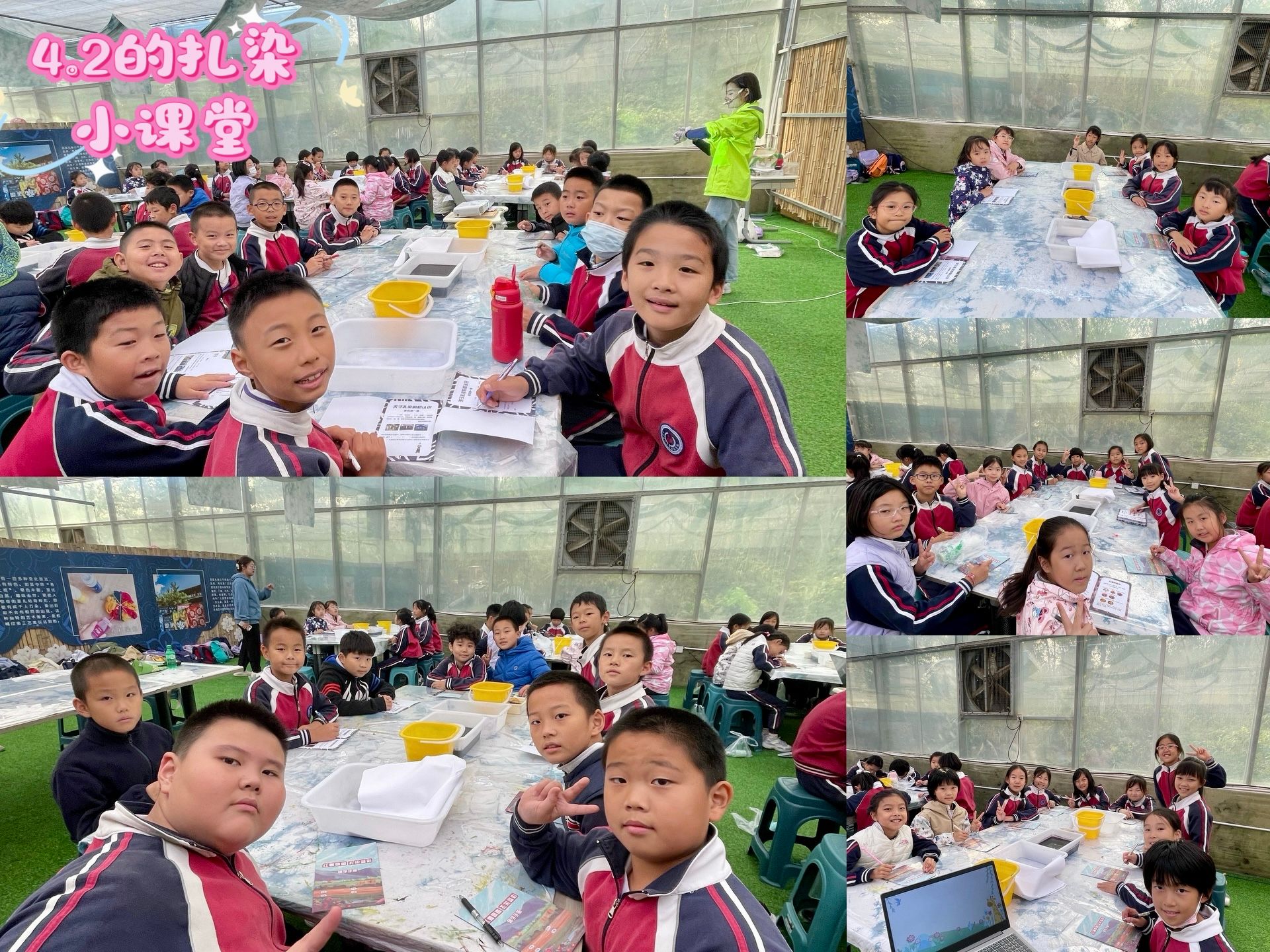 “布期而遇,扎染生花”活动:学生认识到扎染是我国的非物质文化遗产,了解不同地区的扎染文化,学习不同的扎染方法,让学生亲自动手制作一个扎染工艺,感受扎染的魅力。拓展学习了拓印的相关知识。