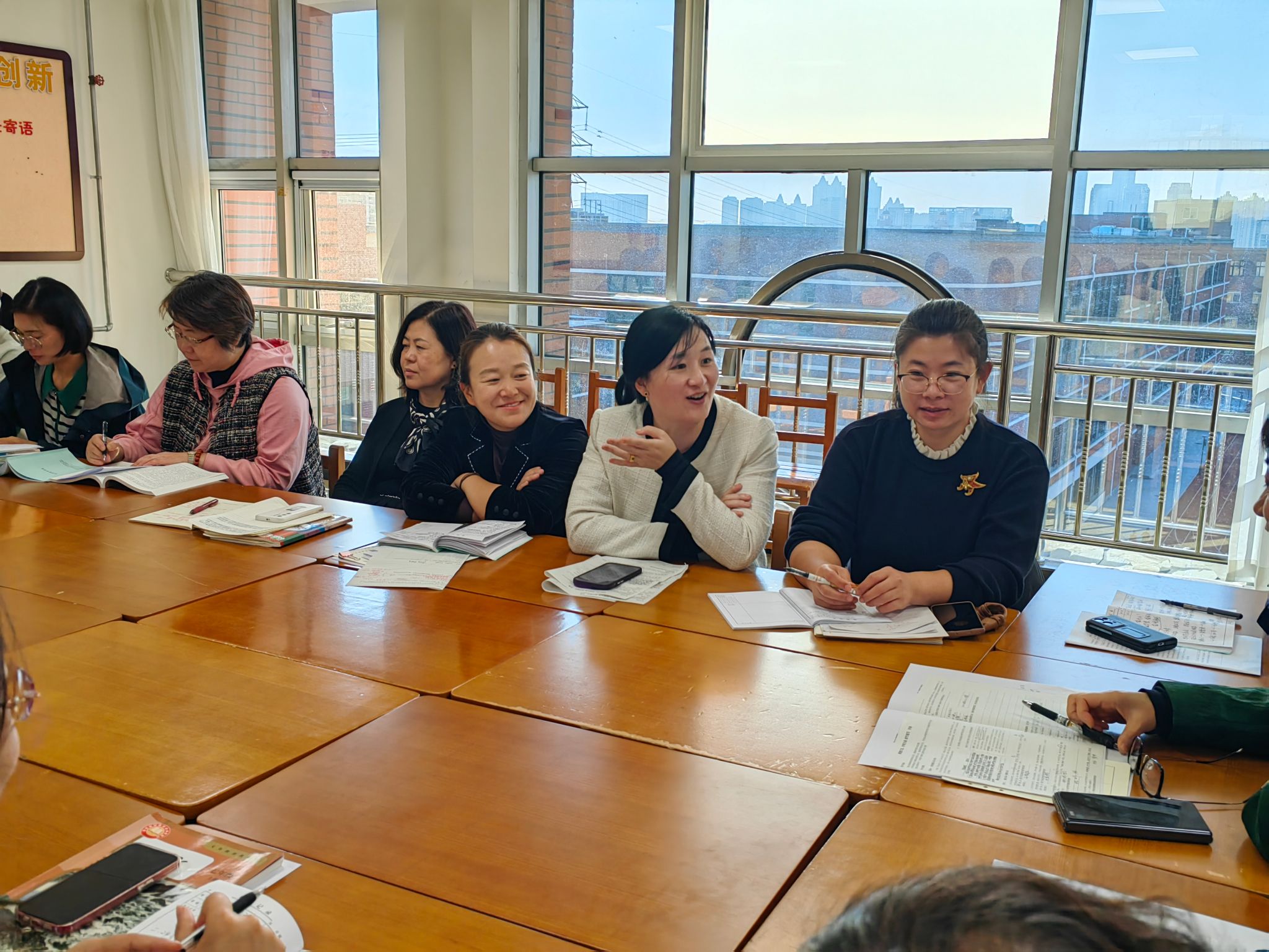 时为九月,序在金秋。秋之美,在于积累与勃发;教之美,在于钻研与提质。为了更好地促进我校语文教师的专业成长,有效提高课堂质量,2024年10月29日,我校主校区与圣克拉校区初中语文组携手共进,共同集备,展开“先写后导”语文课堂研讨活动。我校领导高度重视此次教研活动,党委书记王东,党委副书记、校长李桂玲,副校长张颖亲临现场,全程观摩、参与两校区语文组教研活动。金秋充满诗意,教研如火如荼。