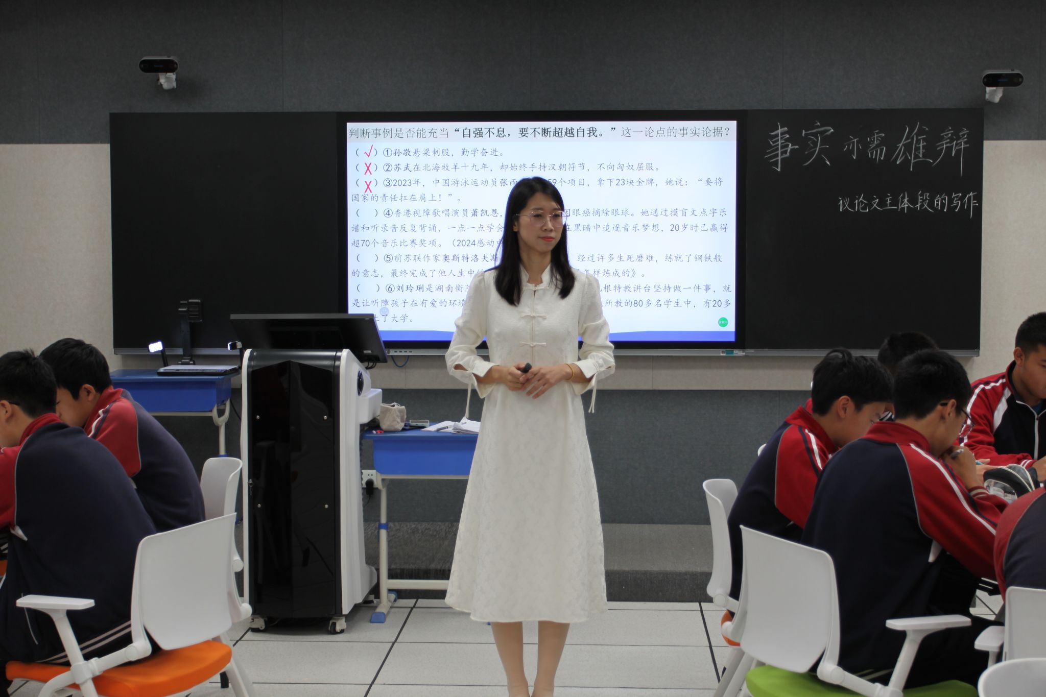 首先,大家观摩了圣克拉校区李娜老师执教的《事实亦需雄辩——议论文主体段写作》的写作课和主校区刘爽老师执教的《掌握方法,妙笔生“画”》的写作课。