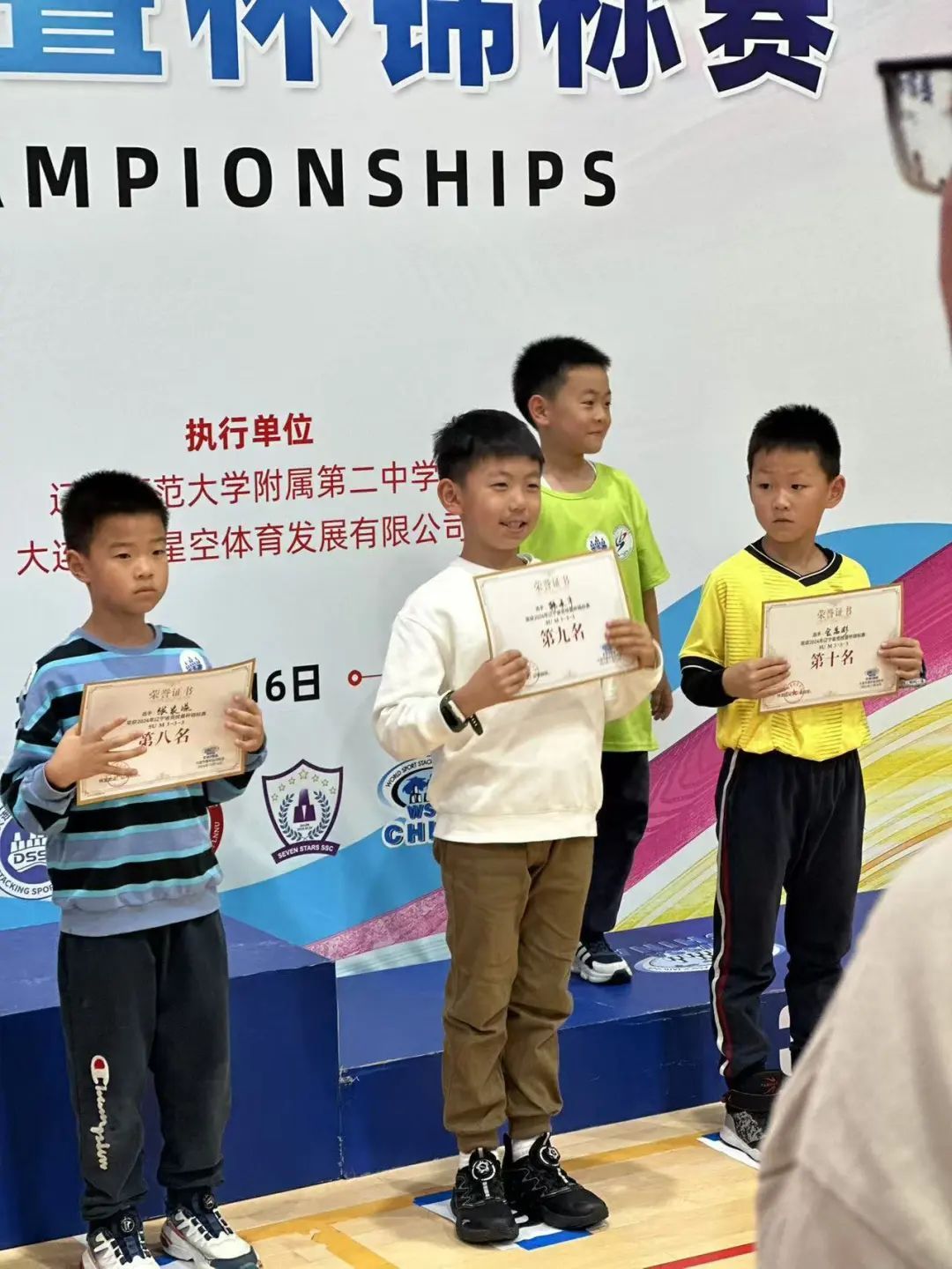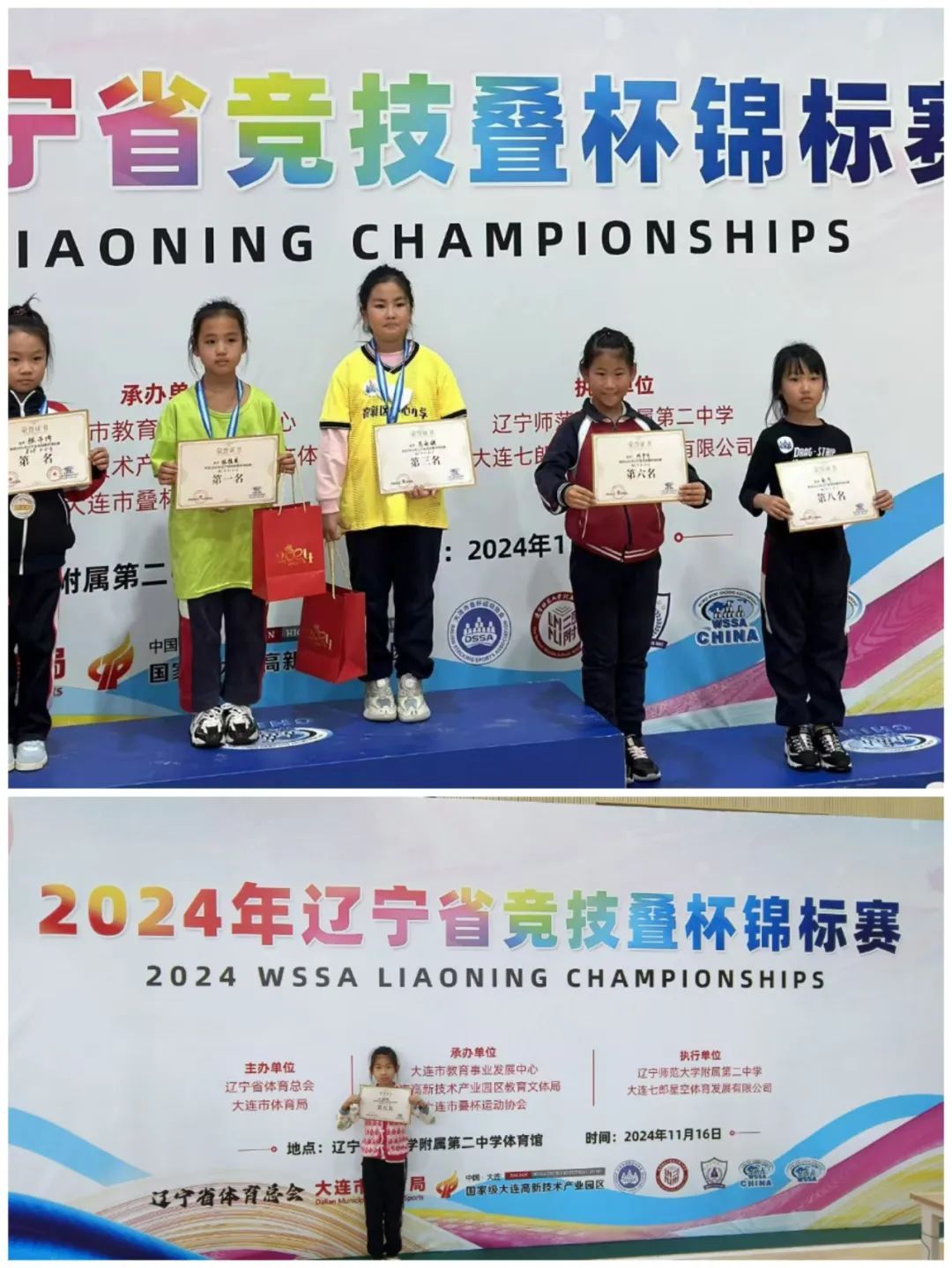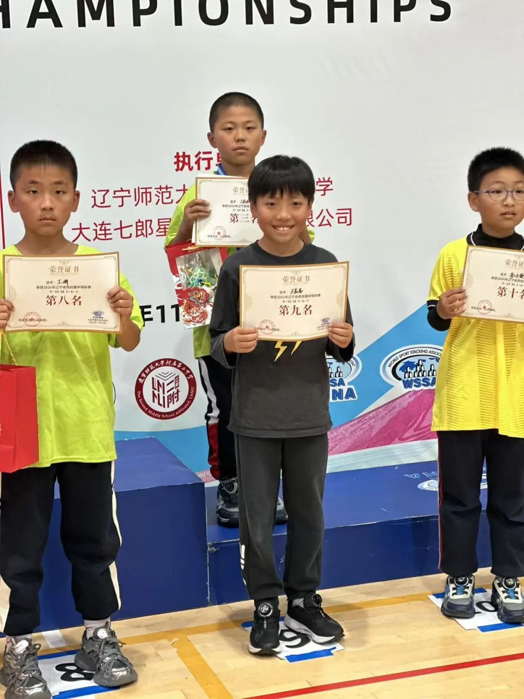 寒冬将至,热情不减,辽宁省竞技叠杯锦标赛如期而至。经过激烈角逐,我校李政宏老师带领的叠杯代表队取得了优异成绩。李嘉祺分获女子组11-14u cycle、11-14u 3-6-3 及11-14u 3-3-3三个单项冠军,并荣获女子组总冠军。邓力为、尹嘉嵩分获男子组9-10u 3-6-3第七名、第九名,韩承宇获男子组8u 3-3-3 第九名,董丞函获女子组9-10u第五名,何予可获女子组8u 3-3-3第六名、 8u3-6-3第八名。