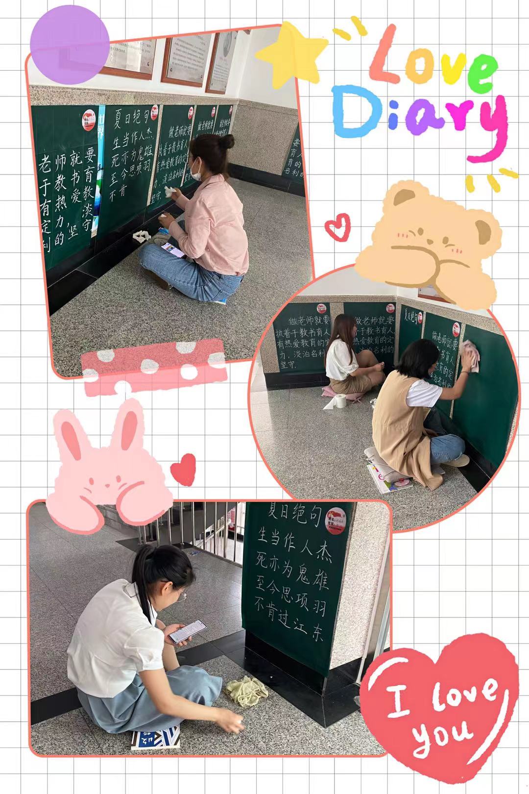 6月2日下午,我校组织小学部全体青年教师进行了继4月下旬个人粉笔字展示之后的又一次粉笔字拉练活动。各位青年教师在方寸黑板之上挥斥方遒,将自己一个月以来练习的成果汇集在了粉笔与黑板之中。