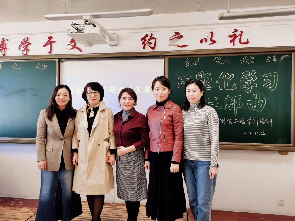在赵霞副校长的邀请下,阎老师为英语组教师及小学的所有青年教师们,我们关于《问题化学习研究》的部分教程。阎老师就问题化学习在“五步学习法”中的应用为入点,结合教学实例了问题化学习模拟教学、针对主题、试题、练习提问及针对文本提问的学习。阎老师的讲座深入浅出,风趣趣事,使与会的老师们受益匪浅。