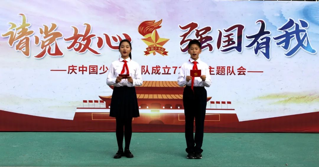 在第72个少先队建队日来临之际,为引导广大少先队员用实际行动践行“请党放心,强国有我”的铮铮誓言,凝聚奋斗朝气,发挥全体少先队员主人翁精神,我校隆重举行“请党放心,强国有我”主题系列活动。