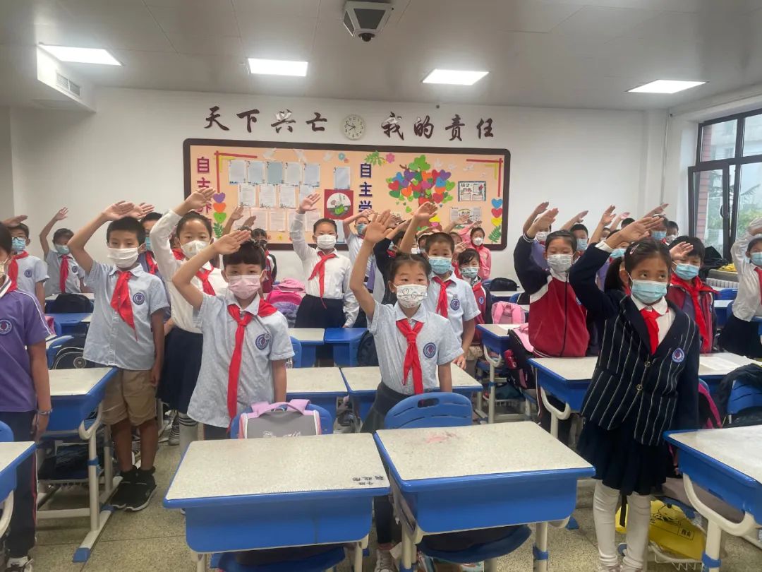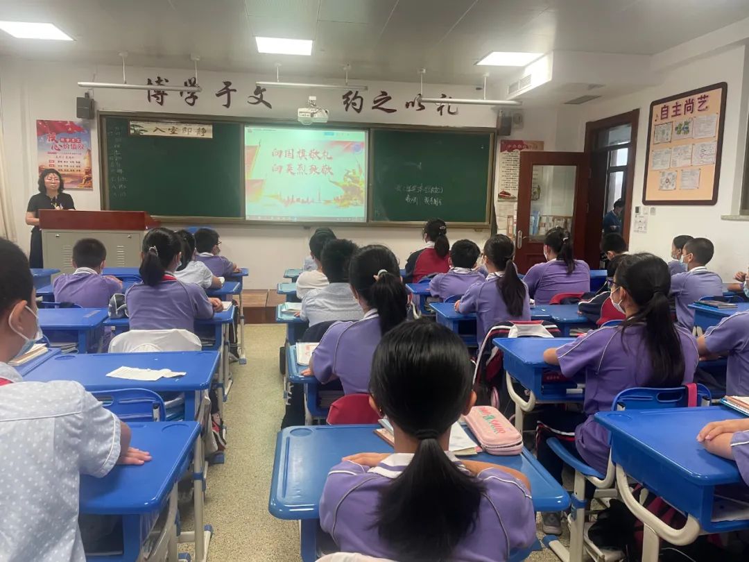 早晨,校园里回荡着歌声《我和我的祖国》,这熟悉的旋律振奋着每一位师生。飘扬的五星红旗映照了72年来祖国母亲经历的风风雨雨,走过的岁月蹉跎。 升旗仪式中,同学们高唱国歌,庄严肃穆地敬礼,深深地表达了他们珍惜今天和平幸福生活,铭记历史、缅怀先烈的真情实感。