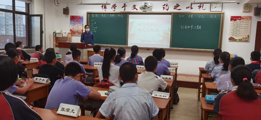 孙嘉一、王子文两位同学做了“向国旗敬礼,向英烈致敬”的主题演讲。“如果信念有颜色,那一定是中国红!”他们引用9月25日孟晚舟女士获释回国后的发言作为本次演讲的开始。然后,他们从革命战争年代、新中国成立初期和社会主义新时代三个阶段分别讲述了不同时期的英雄和烈士们不屈不挠的革命精神和坚定的理想信念,以及为国家做出的不朽的贡献。他们倡导同学们:“英烈,是一个国家和民族的精神脊梁,捍卫英烈就是捍卫我们的精神高地,崇尚英烈就是守护我们民族的根与魂。一个国家和民族崇尚英雄,才有凝聚力和战斗力,国家和民族才有未来!而学习英雄精神,传承红色精神,是我们新时代接班人最重要的一课!”