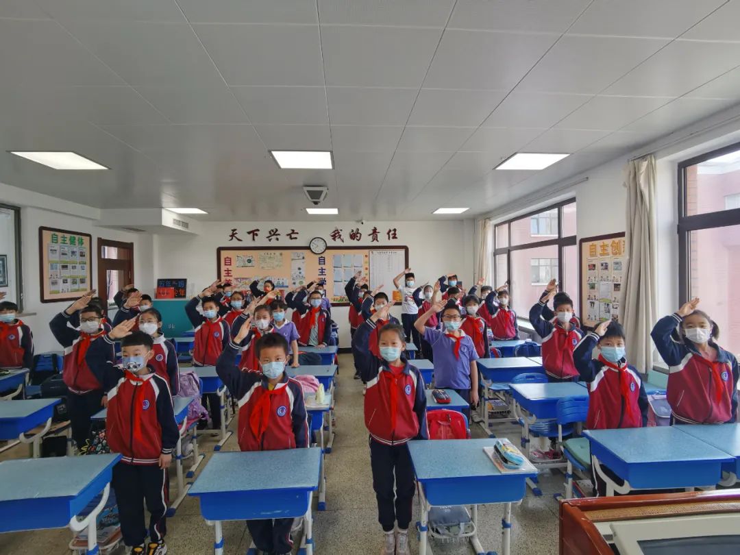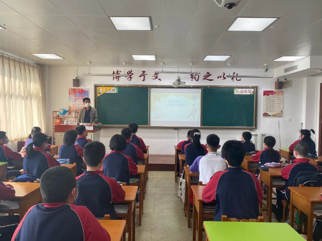 德育主任曹延明为同学们带来疫情防控第一课,他从每日健康监测、上学放学途中和在校期间全程科学佩戴口罩、有效开窗通风、少聚集、一米线、加强体育锻炼等几方面向同学们强调了日常疫情防控要求。最后,同学们一同观看了防疫视频,增强了防疫意识,进一步明确了常态化防控细则。