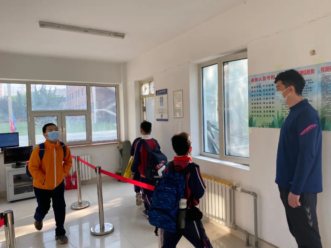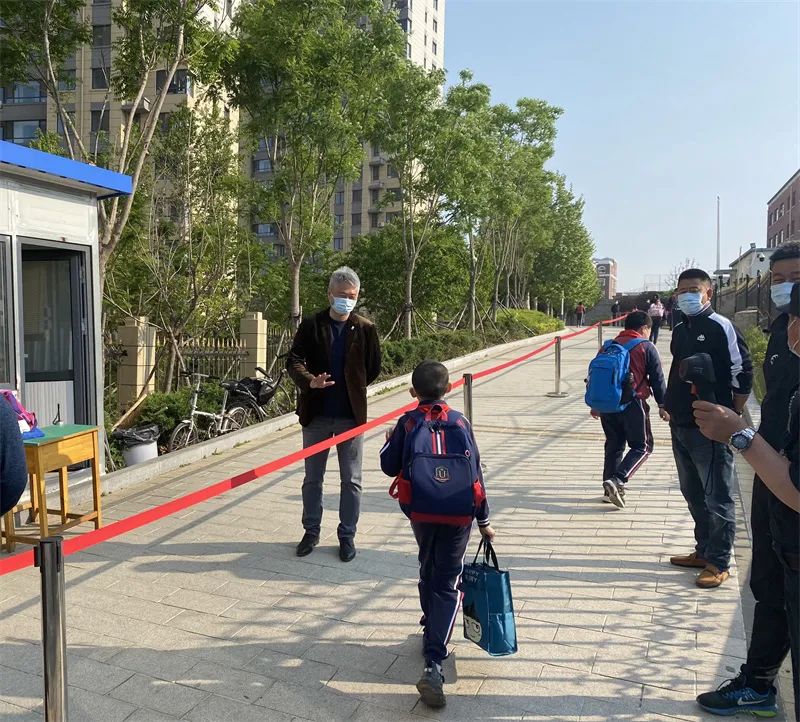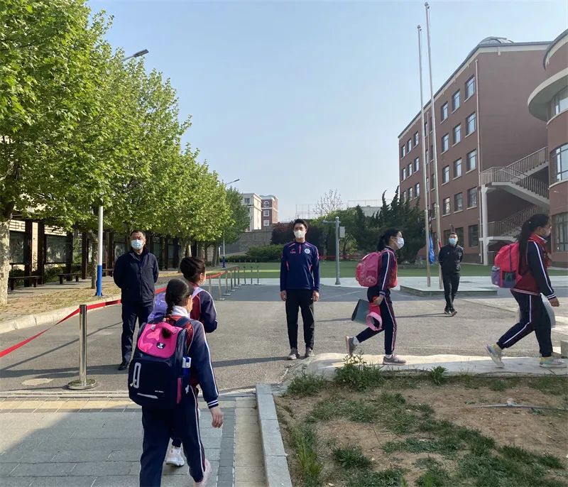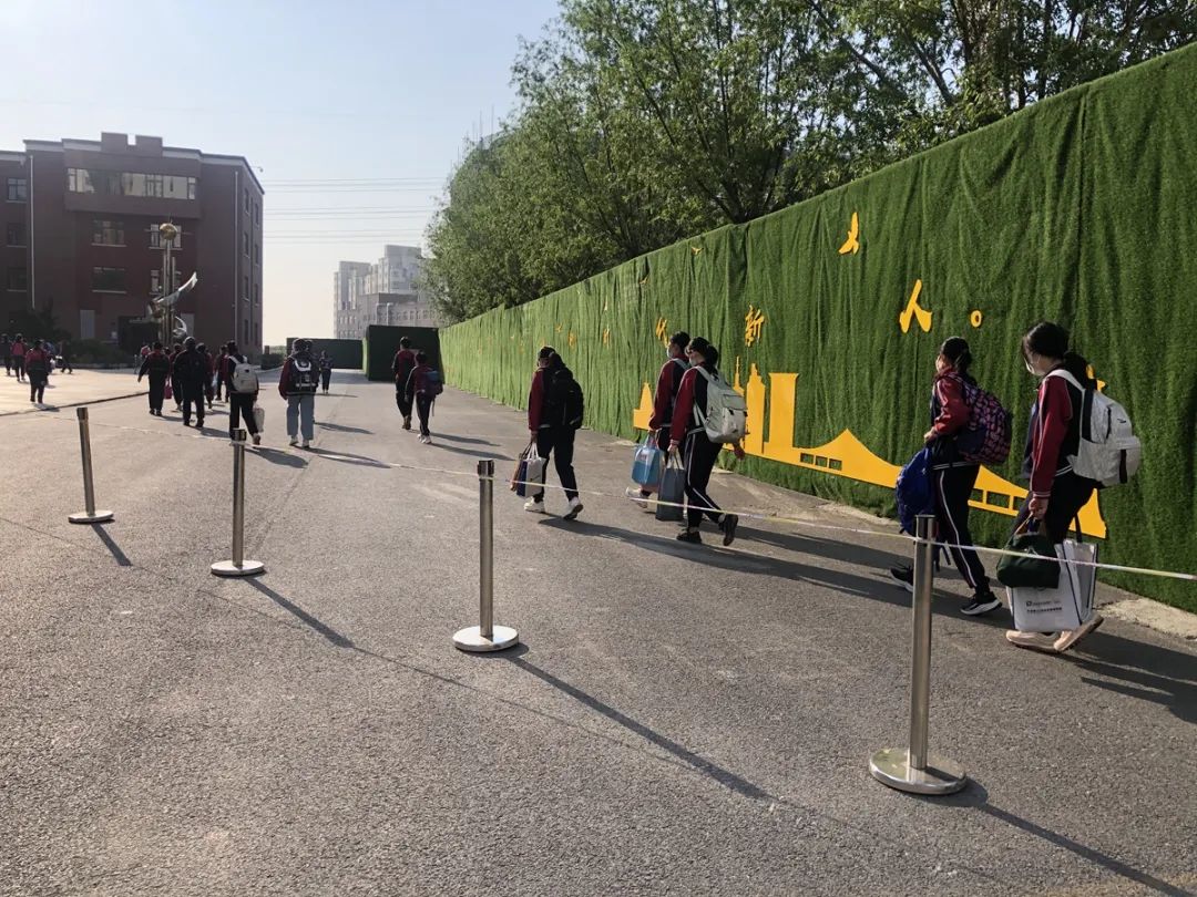 今天早上,朝阳煦暖,和风习习。学子们陆续错时返校,在校园门口进行体温检测,有序通过红外线测温通道。执勤老师们随时提醒学生们保持一米间距,提醒家长们遵守学校规定,有序接送孩子。每一个环节都全力确保精准、有序、人性化、安全可控。