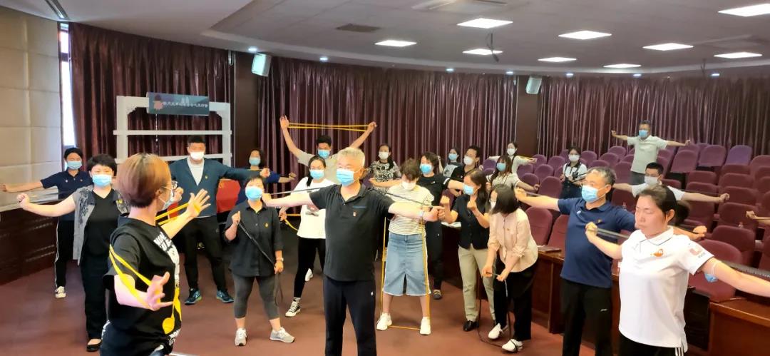最后,由运动人体科学教工党支部的党员同志带领大家进行科学运动,讲解解除机体疲劳状态、提高人体的适应能力及耐受能力的科学方法,旨在让参加活动的党员同志以更饱满的精神状态投入到工作中,更好的服务于学生,力争为党健康工作五十年。