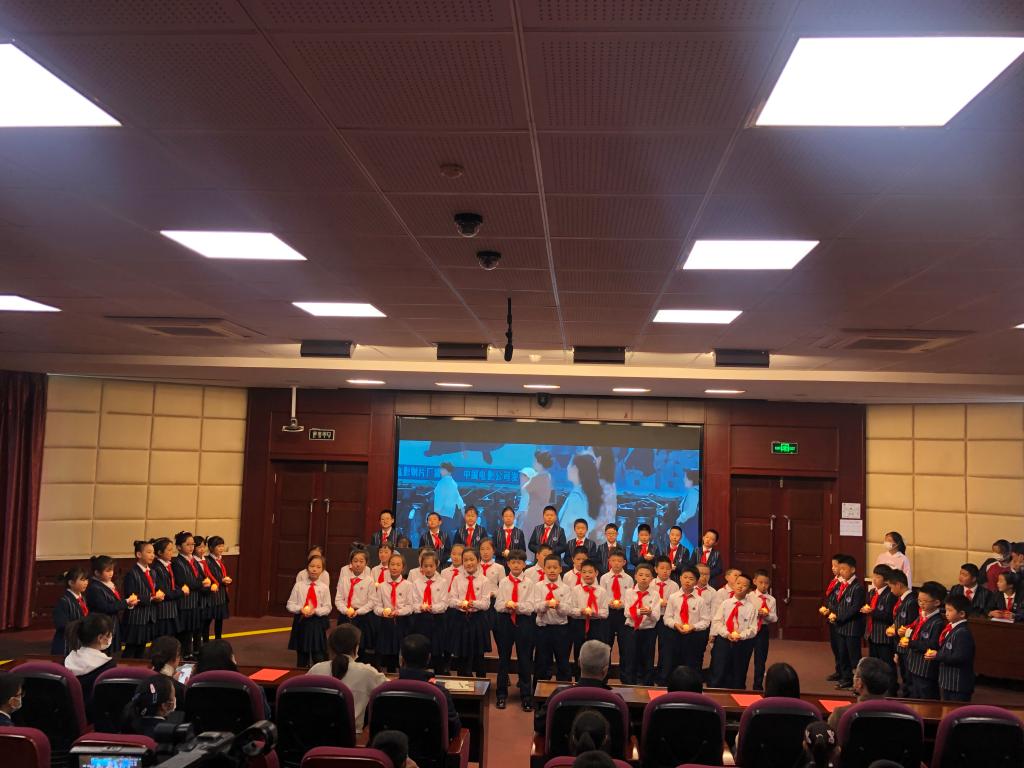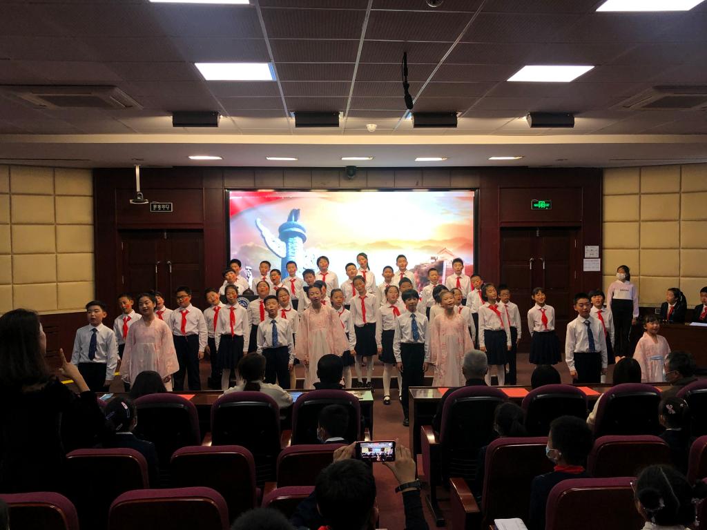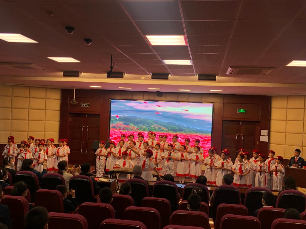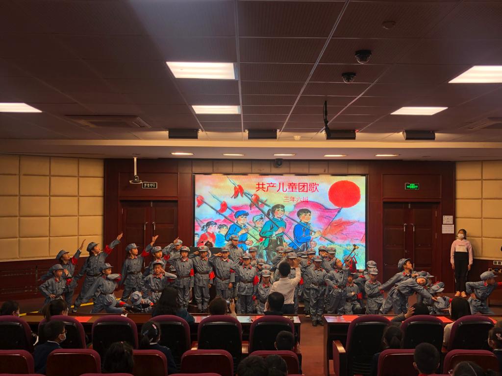 首先登场的是三年一班演唱队,表演曲目《映山红》及《少年少年的春天》。童声虽稚,童心向党,孩子们的歌声轻如春风、细如春雨,润化听众的耳目心神。